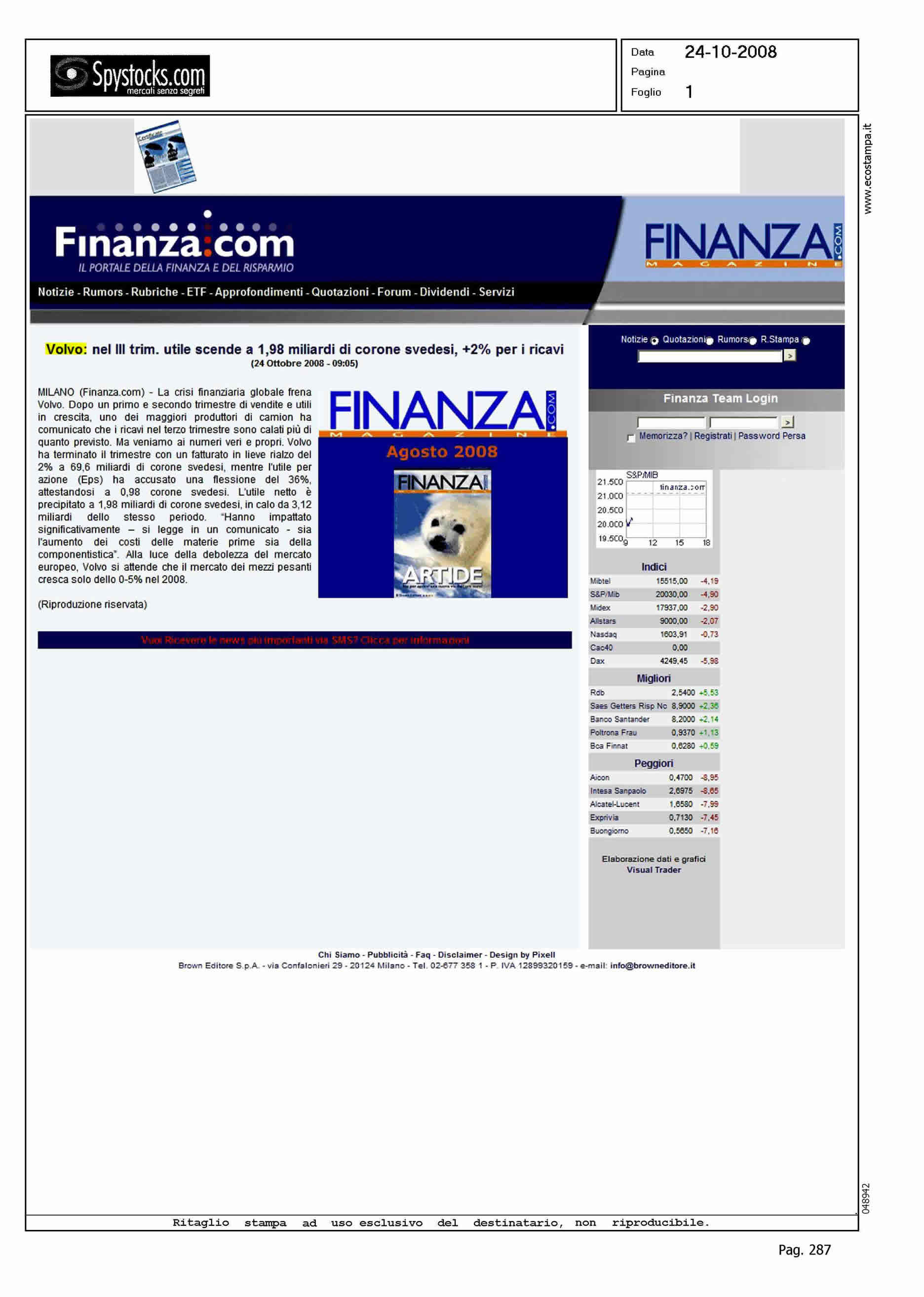 Author: Line: Corporate Model: Corporate Subject: NEWS Title: VOLVO: NEL III TRIM. UTILE SCENDE A...Highlight: