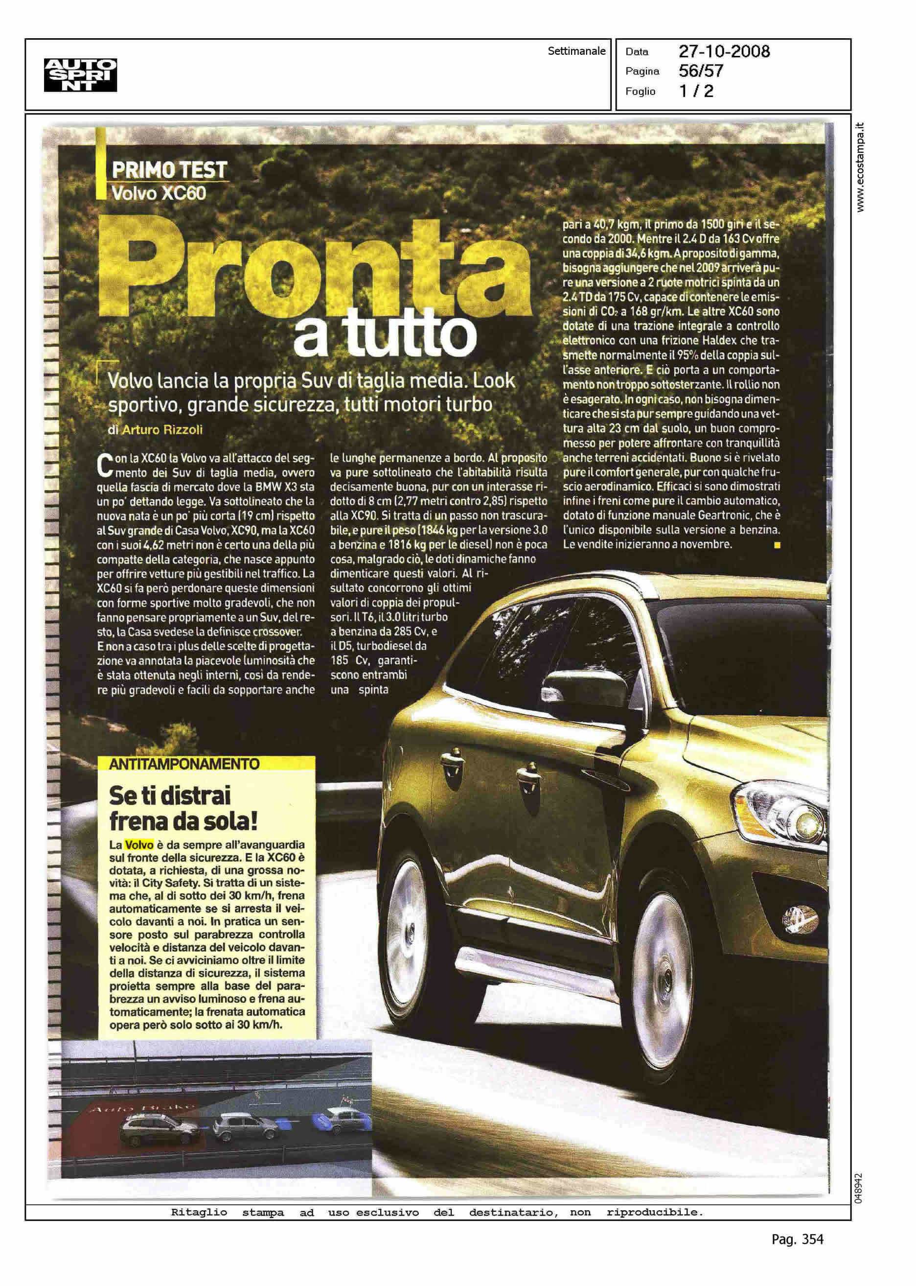 Author: RIZZOLI, ARTUROLine: XC60 Model: Subject: PRODUCT PRESENTATION Title: PRONTA A TUTTOHighlight: