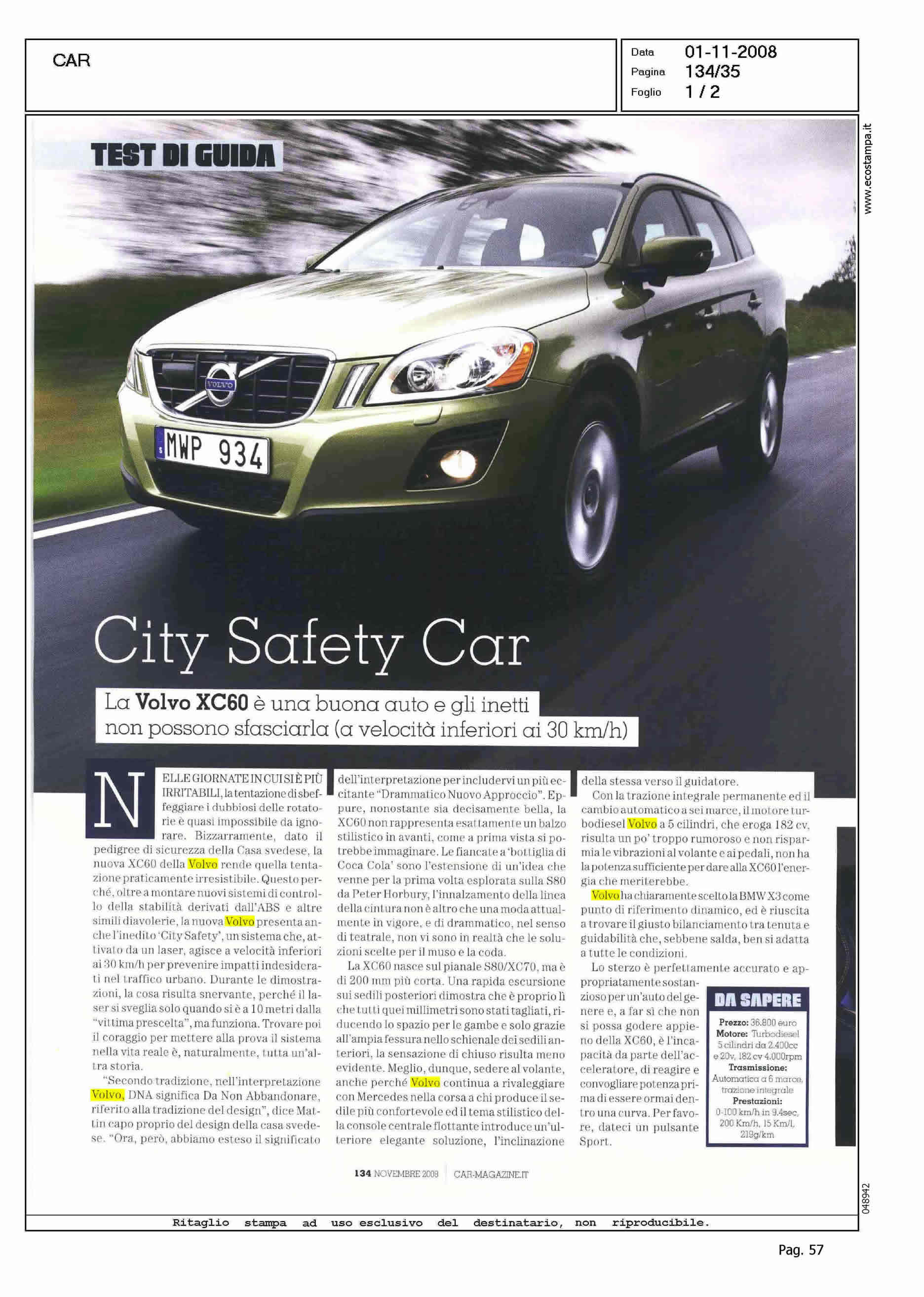 Author: Line: XC60 Model: Subject: PRODUCT PRESENTATION Title: CITY SAFETY CARHighlight: