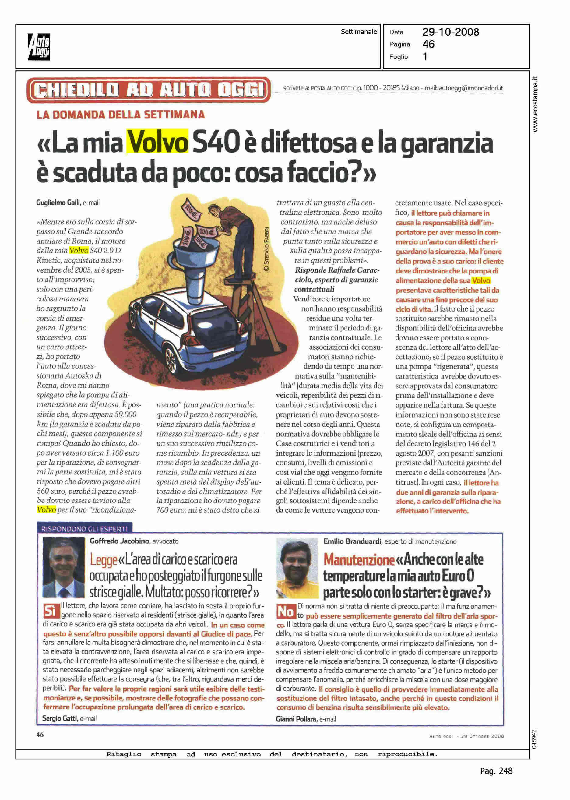 Title: "LA MIA VOLVO S40 E' DIFETTOSA E LA GARANZIA E' SCADUTA DA POCO: COSA FACCIO?"