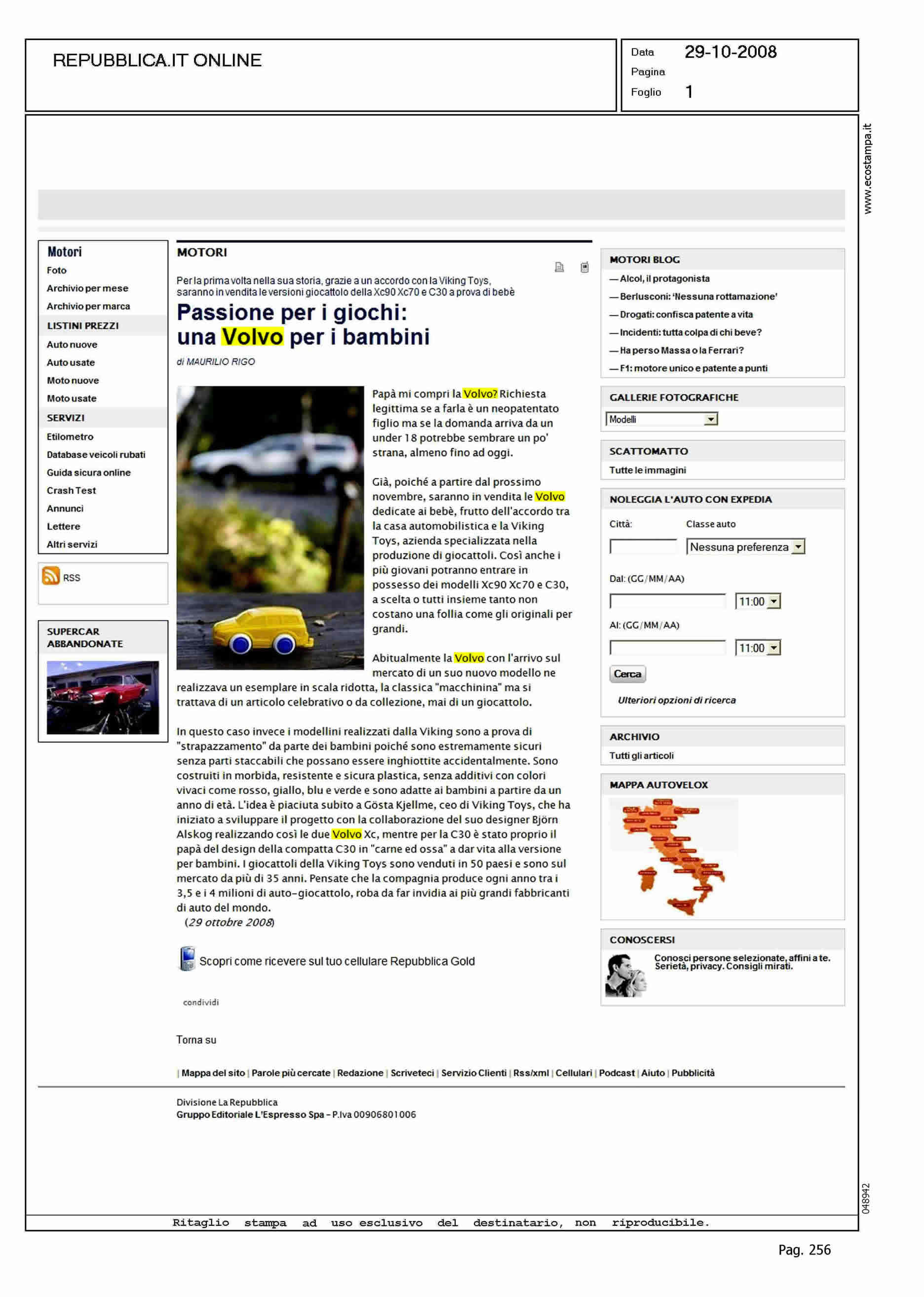 Author: RIGO, MAURILIOLine: Corporate Model: Corporate Subject: NEWS Title: PASSIONE PER I GIOCHI: UNA VOLVO PER I BAMBINIHighlight: