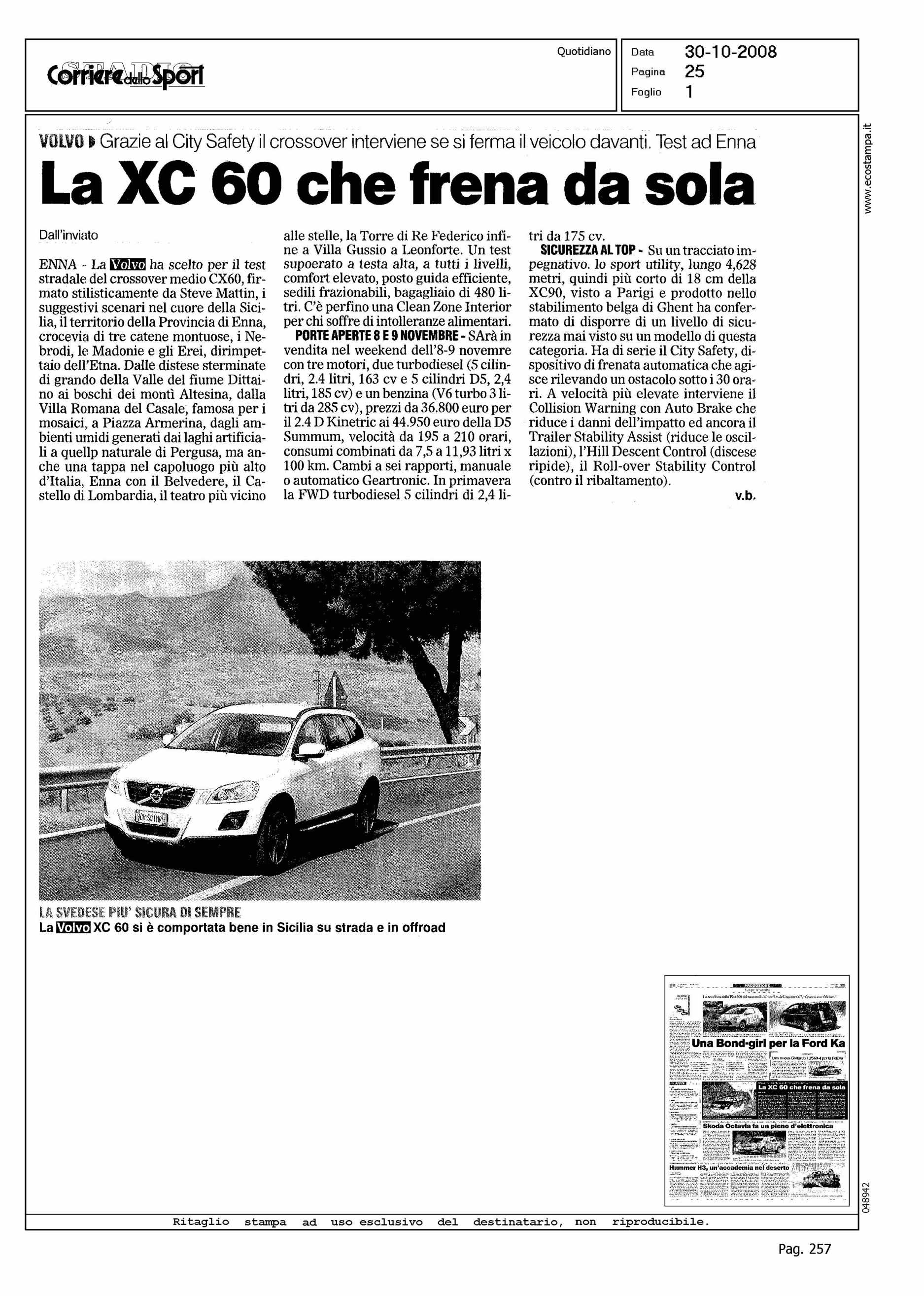 Author: Line: XC60 Model: Subject: ENNA TEST DRIVE Title: LA XC60 CHE FRENA DA SOLAHighlight: