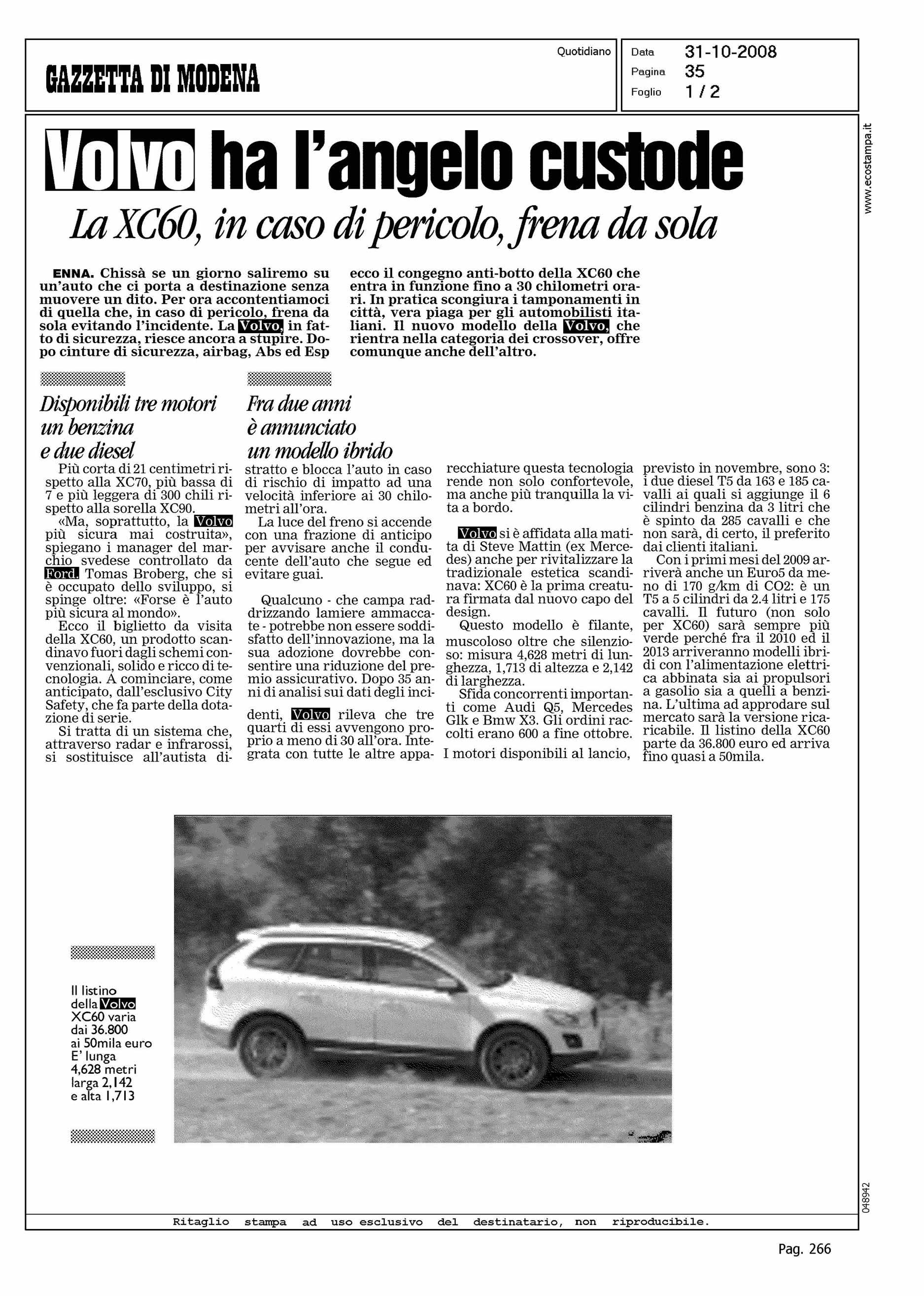 Author: Line: XC60 Model: Subject: ENNA TEST DRIVE Title: VOLVO HA L'ANGELO CUSTODEHighlight: