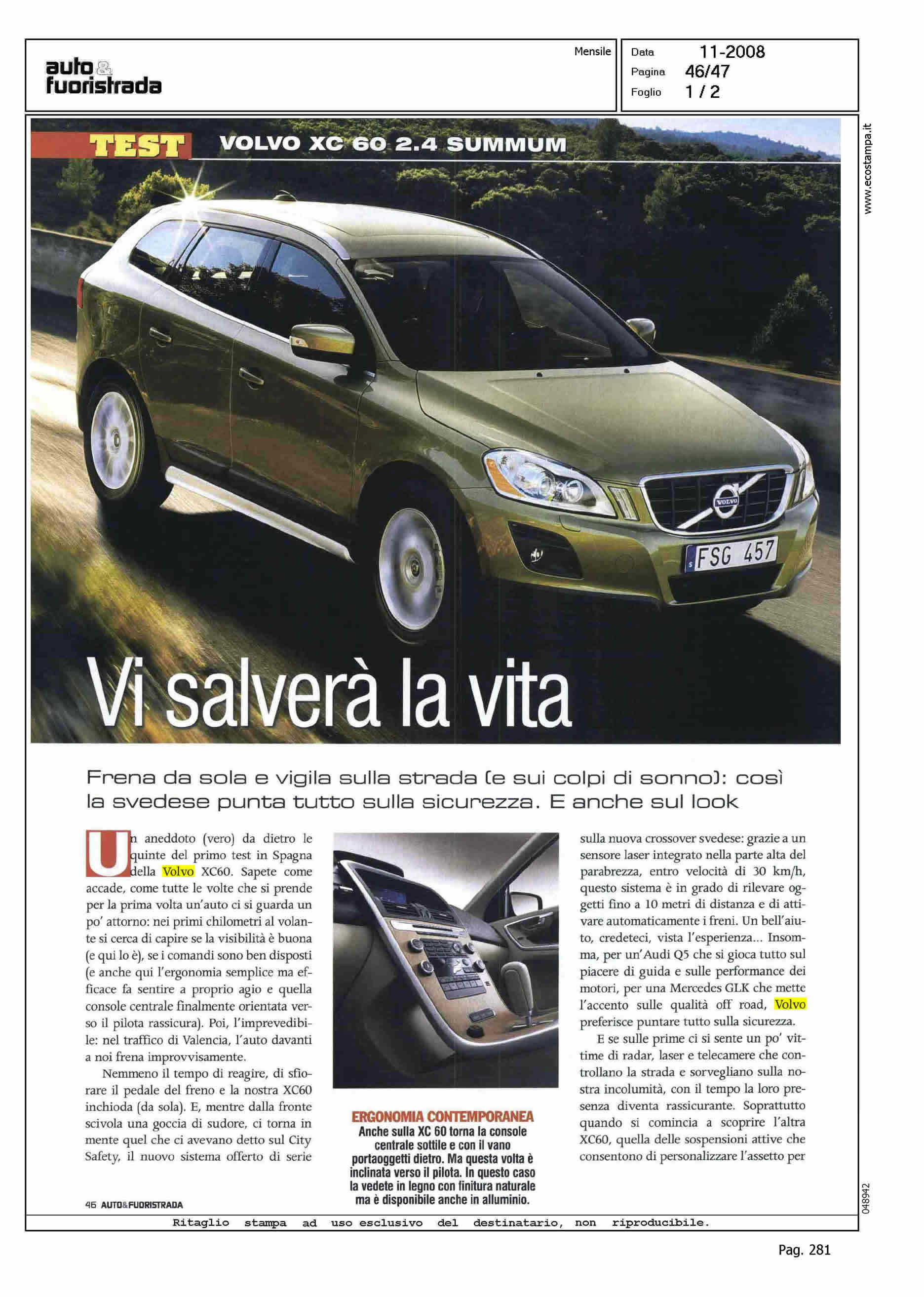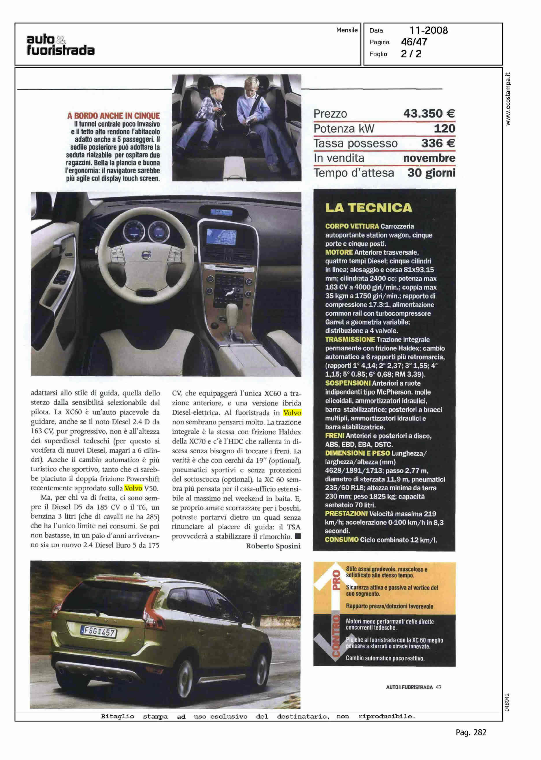 Author: SPOSINI, ROBERTOLine: XC60 Model: Subject: PRODUCT PRESENTATION Title: VI SALVERA' LA VITAHighlight: