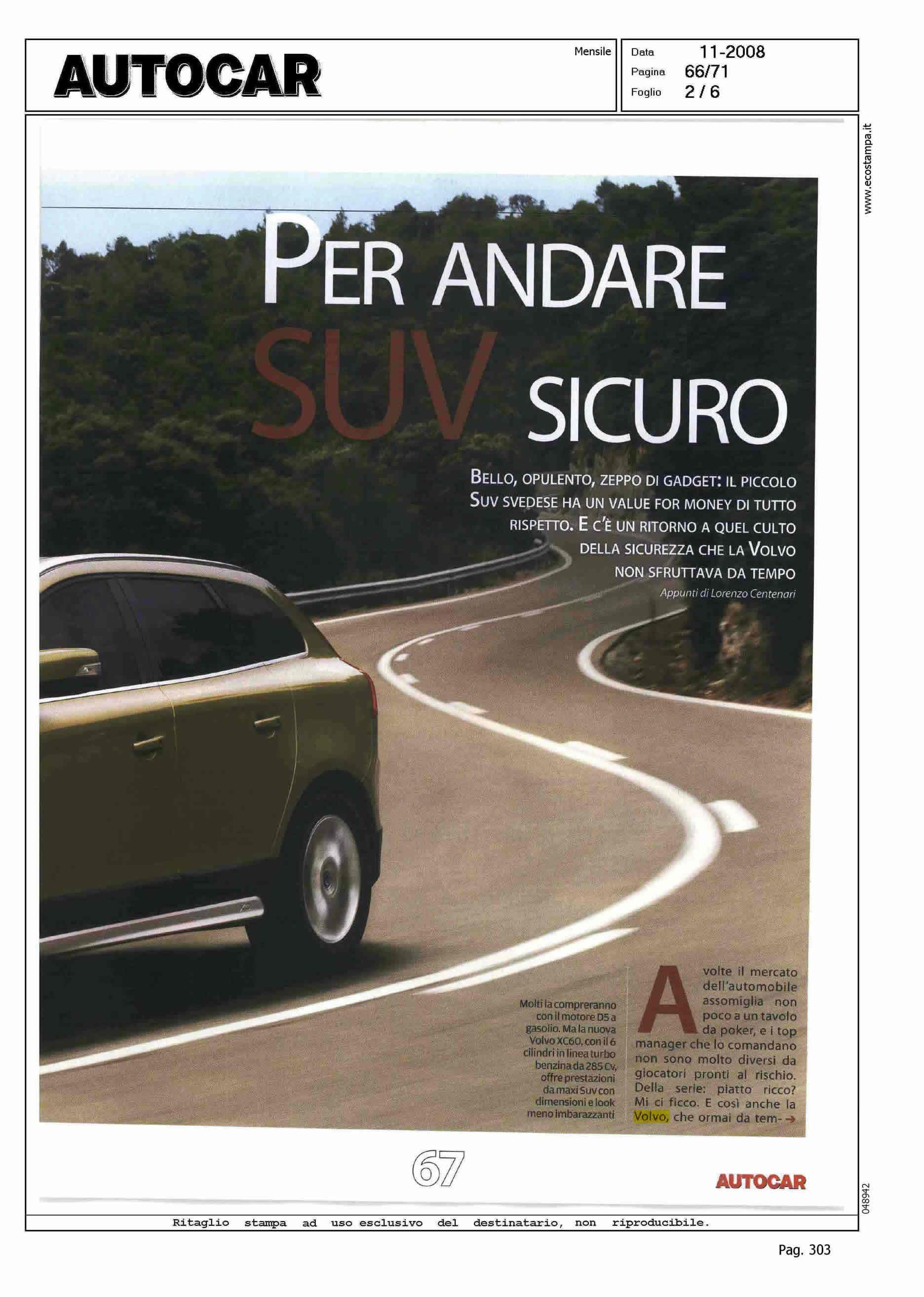 Author: CENTENARI, LORENZOLine: XC60 Model: Subject: PRODUCT PRESENTATION Title: PER ANDARE SUV SICUROHighlight: