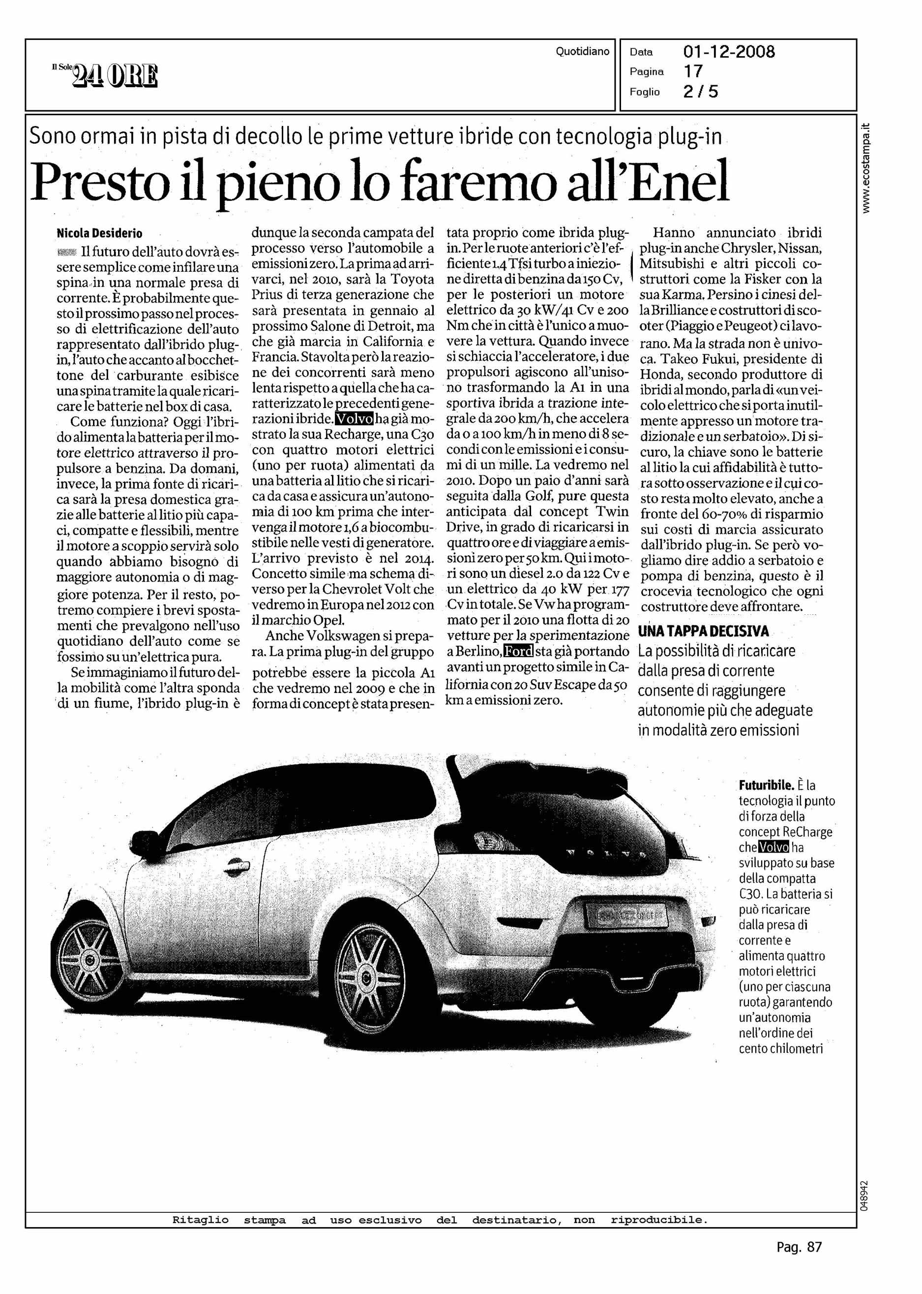 Author: DESIDERIO, NICOLALine: Corporate Model: Corporate Subject: C30 RECHARGE Title: DIETRO L'ANGOLO C'E' L'ELETTRICO - PRESTO FAREMO IL PIENO ALL'ENELHighlight: