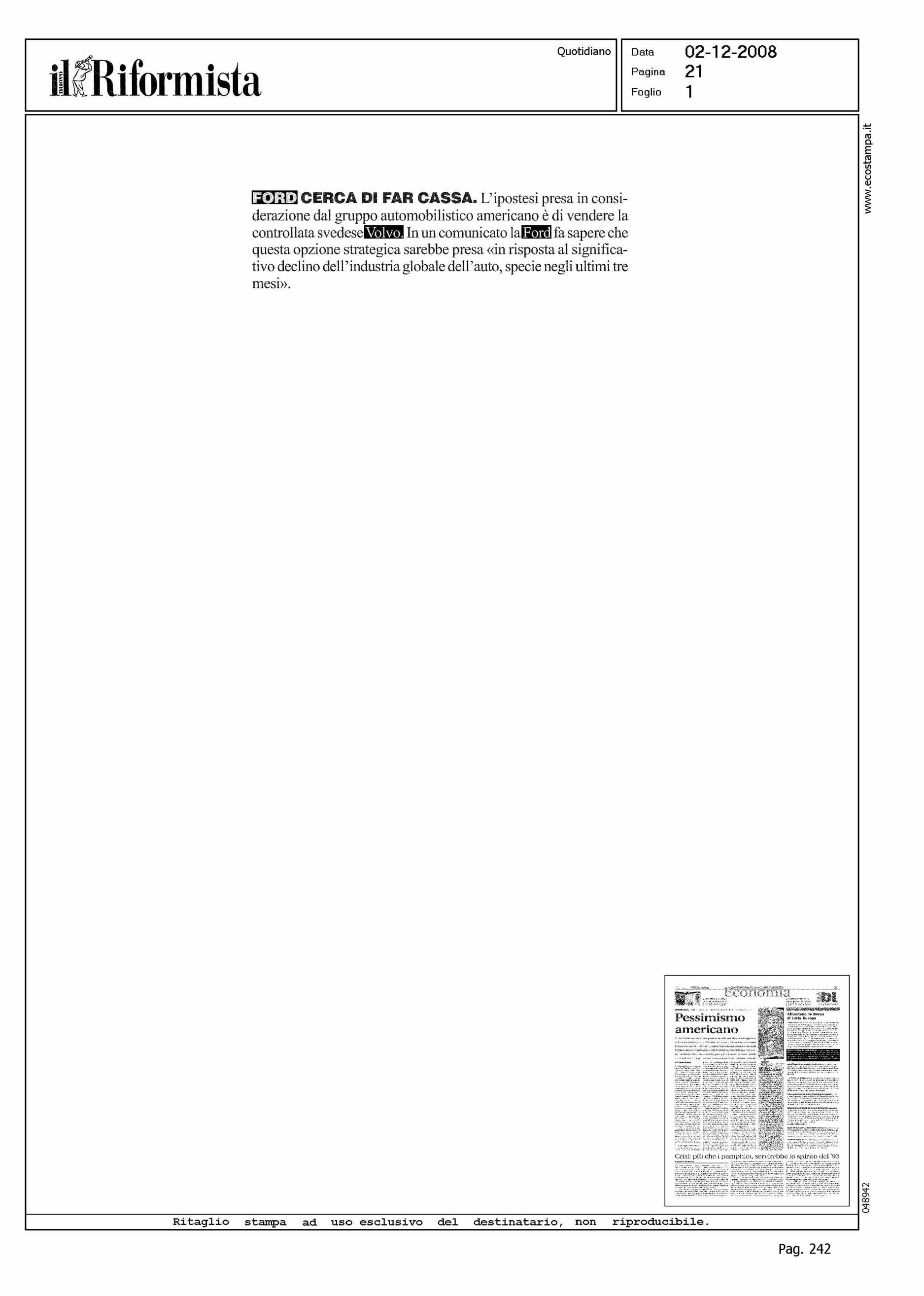 Author: Line: Corporate Model: Corporate Subject: NEWS Title: FORD CERCA DI FAR CASSAHighlight: