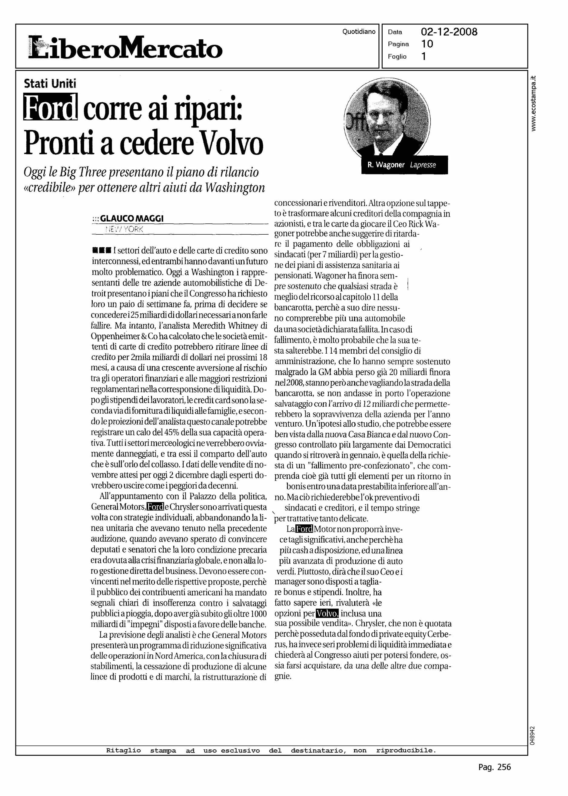 Author: MAGGI, GLAUCOLine: Corporate Model: Corporate Subject: NEWS Title: FORD CORRE AI RIPARI: PRONTI A CEDERE VOLVOHighlight: