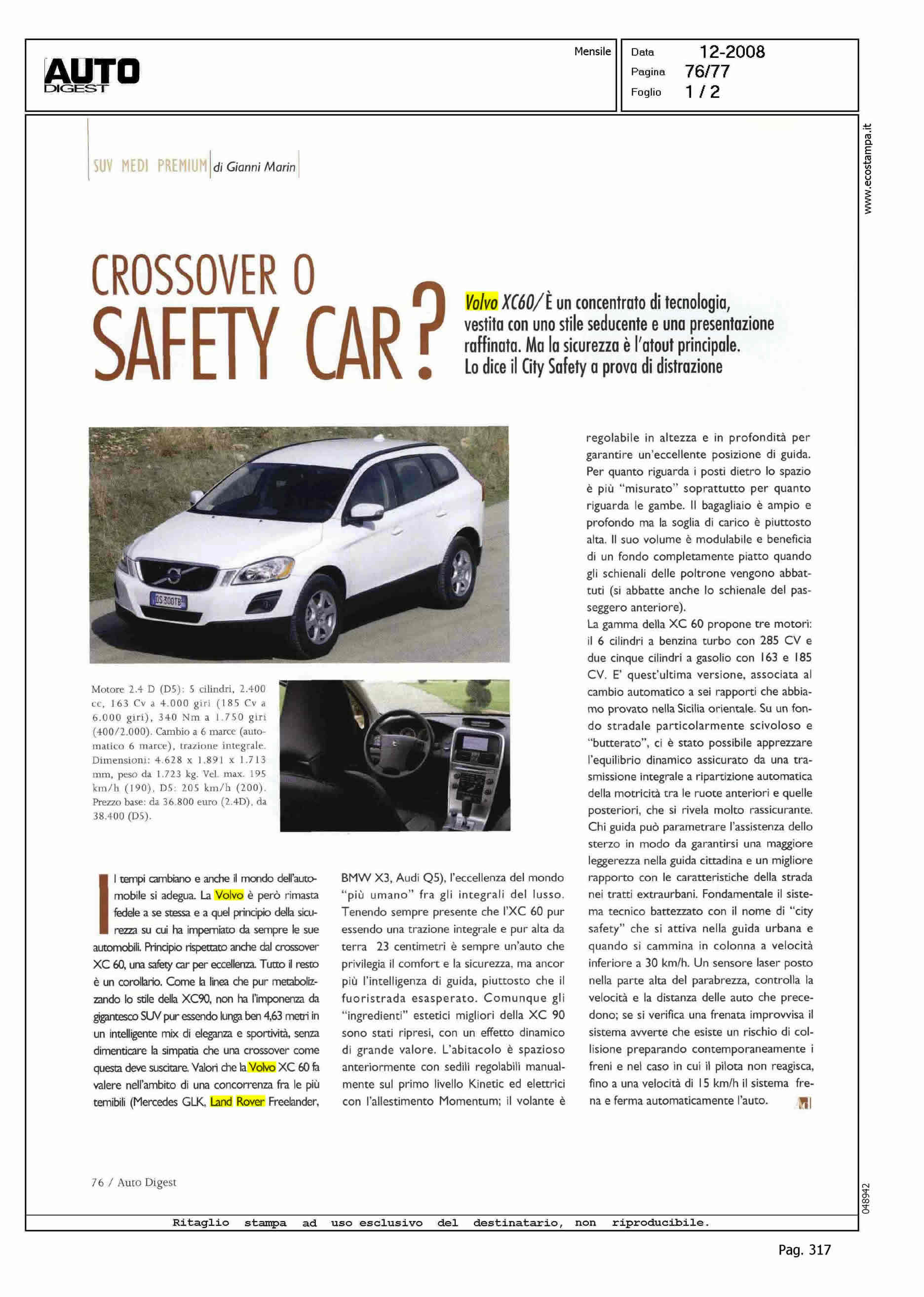 Author: Line: XC60 Model: Subject: PRODUCT PRESENTATION Title: CROSSOVER O SAFETY CAR?Highlight: