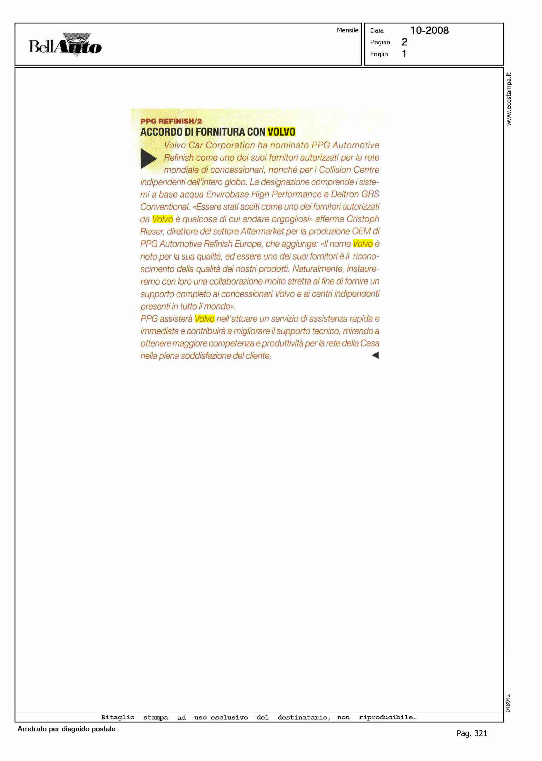 Author: Line: Corporate Model: Corporate Subject: NEWS Title: ACCORDO DI FORNITURA CON VOLVOHighlight: