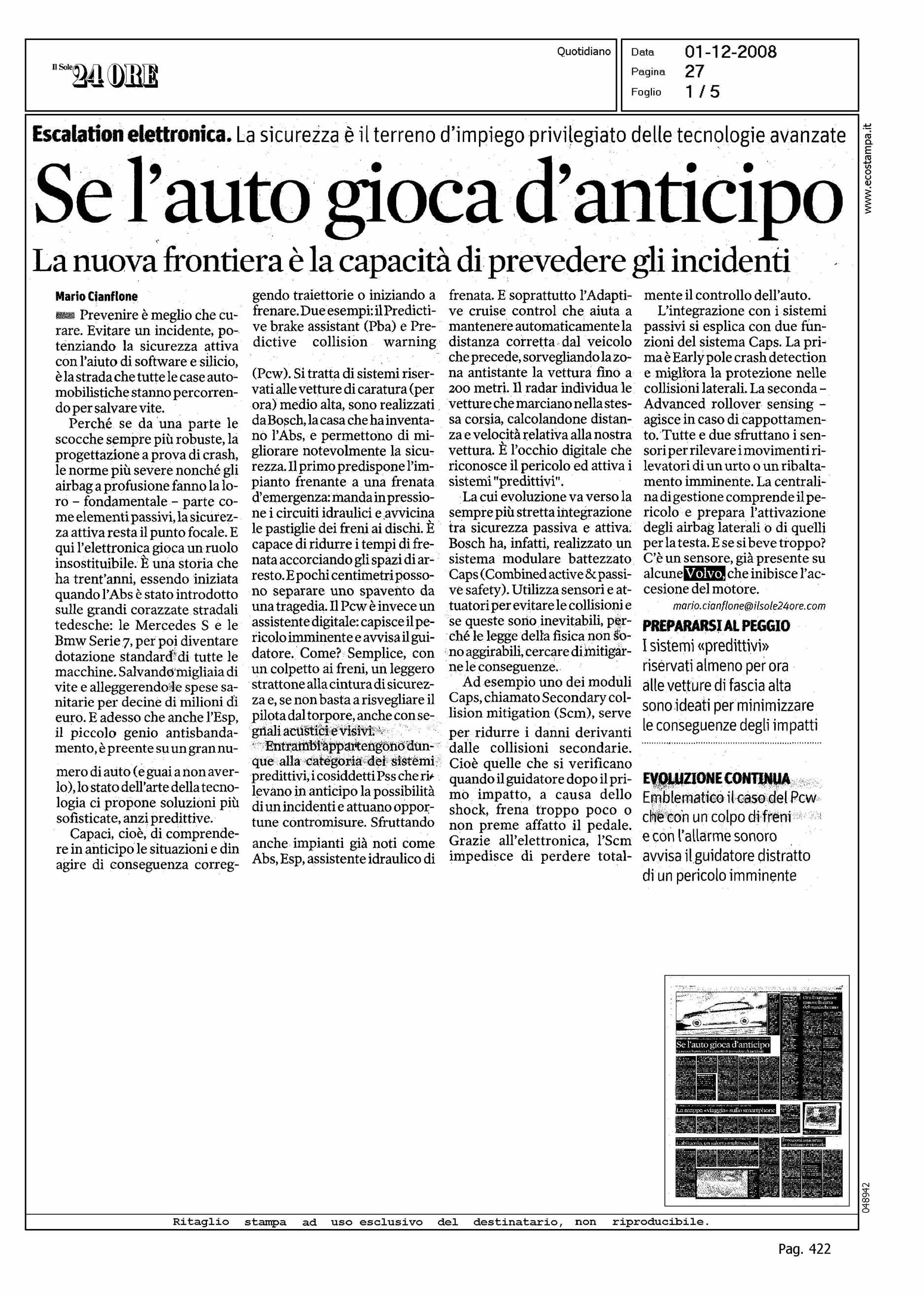 Author: CIANFLONE, MARIOLine: Corporate Model: Corporate Subject: SAFETY Title: SE L'AUTO GIOCA D'ANTICIPOHighlight: