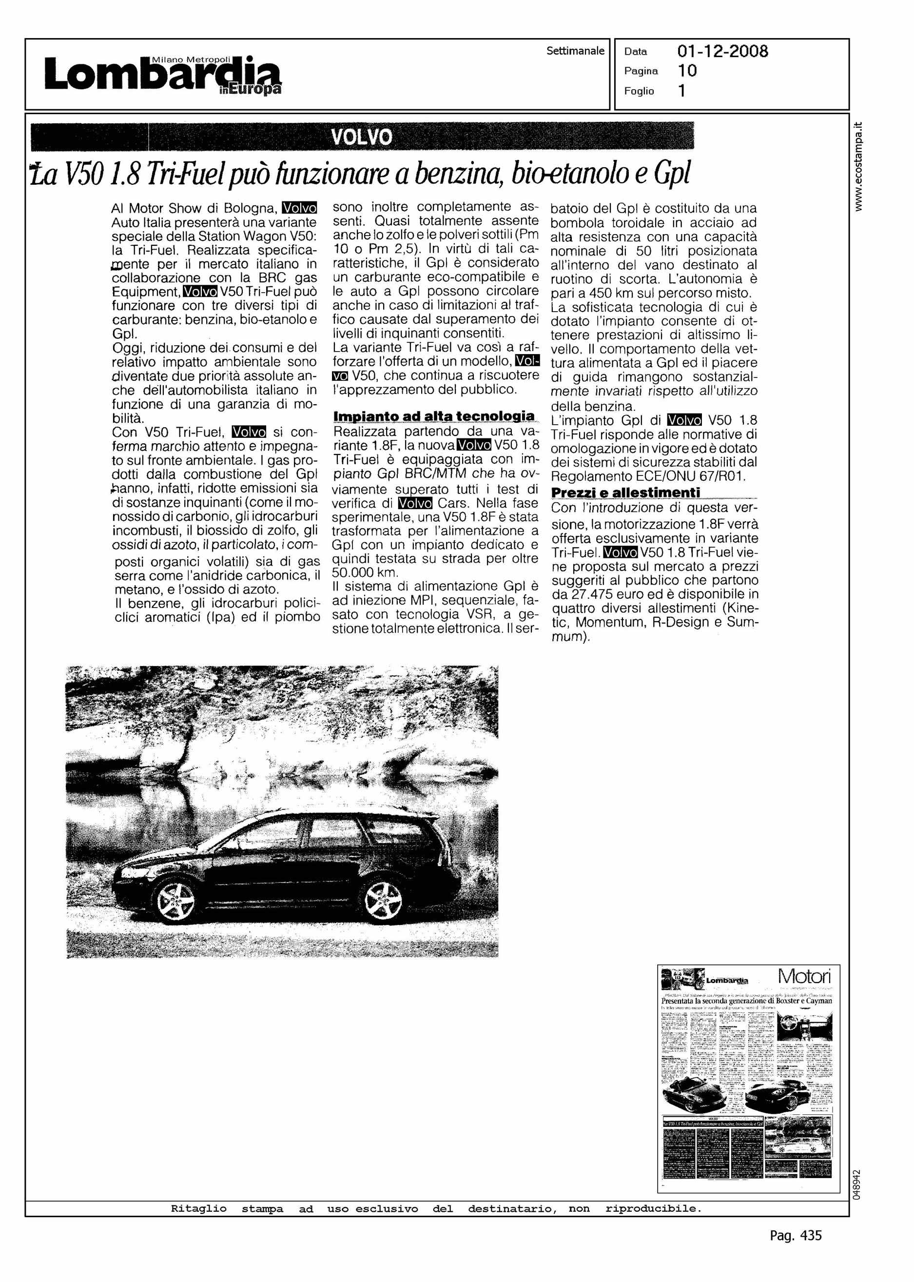 Author: Line: Corporate Model: S40-V50 Subject: DRIVe Title: LA V50 1.8 TRI-FUEL PUO' FUNZIONARE A BENZINA, BIO-ETANOLO E GPLHighlight: