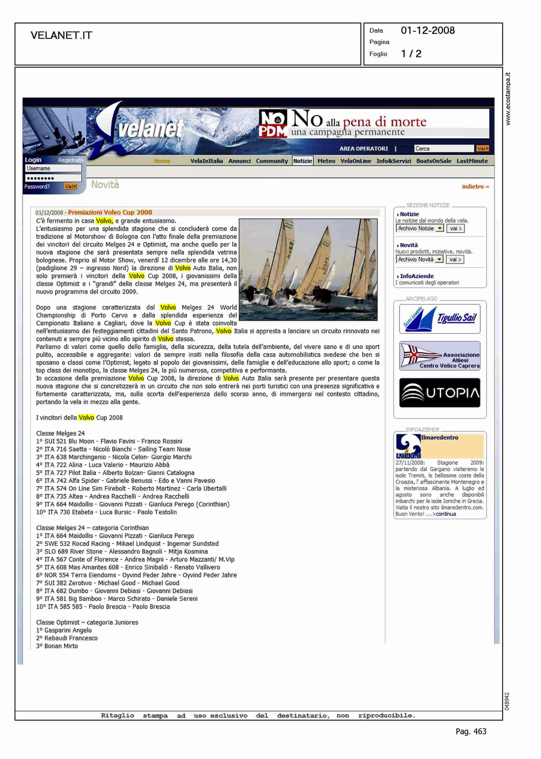 Author: Line: Corporate Model: Corporate Subject: NEWS Title: PREMIAZIONI VOLVO CUP 2008Highlight: