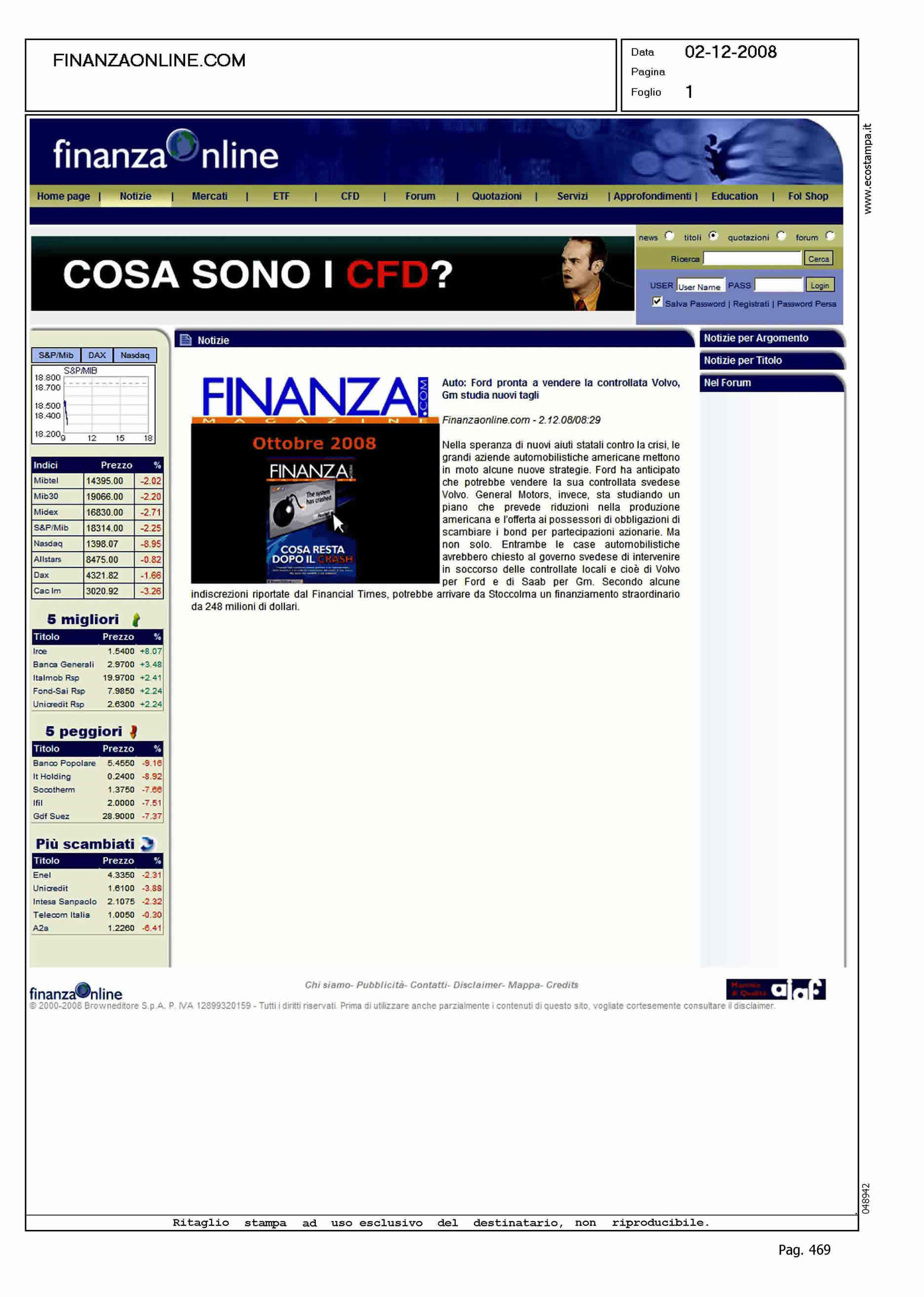 Author: Line: Corporate Model: Corporate Subject: NEWS Title: AUTO: FORD PRONTA A VENDERE LA CONTROLLATA VOLVOHighlight: