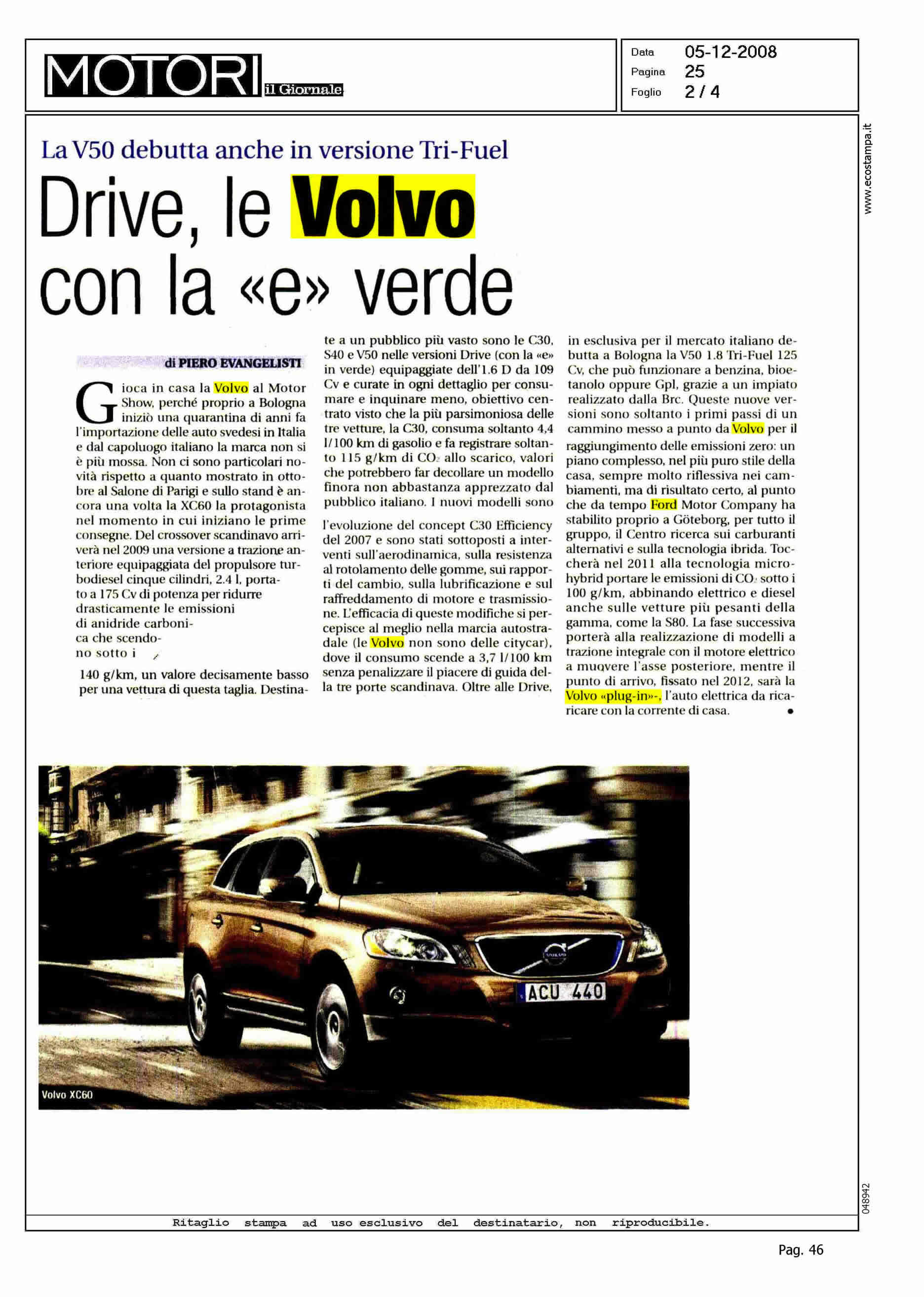 Author: EVANGELISTI, PIEROLine: Corporate Model: S40-V50 Subject: DRIVe Title: DRIVe. LE VOLVO CON LA "E" VERDEHighlight: