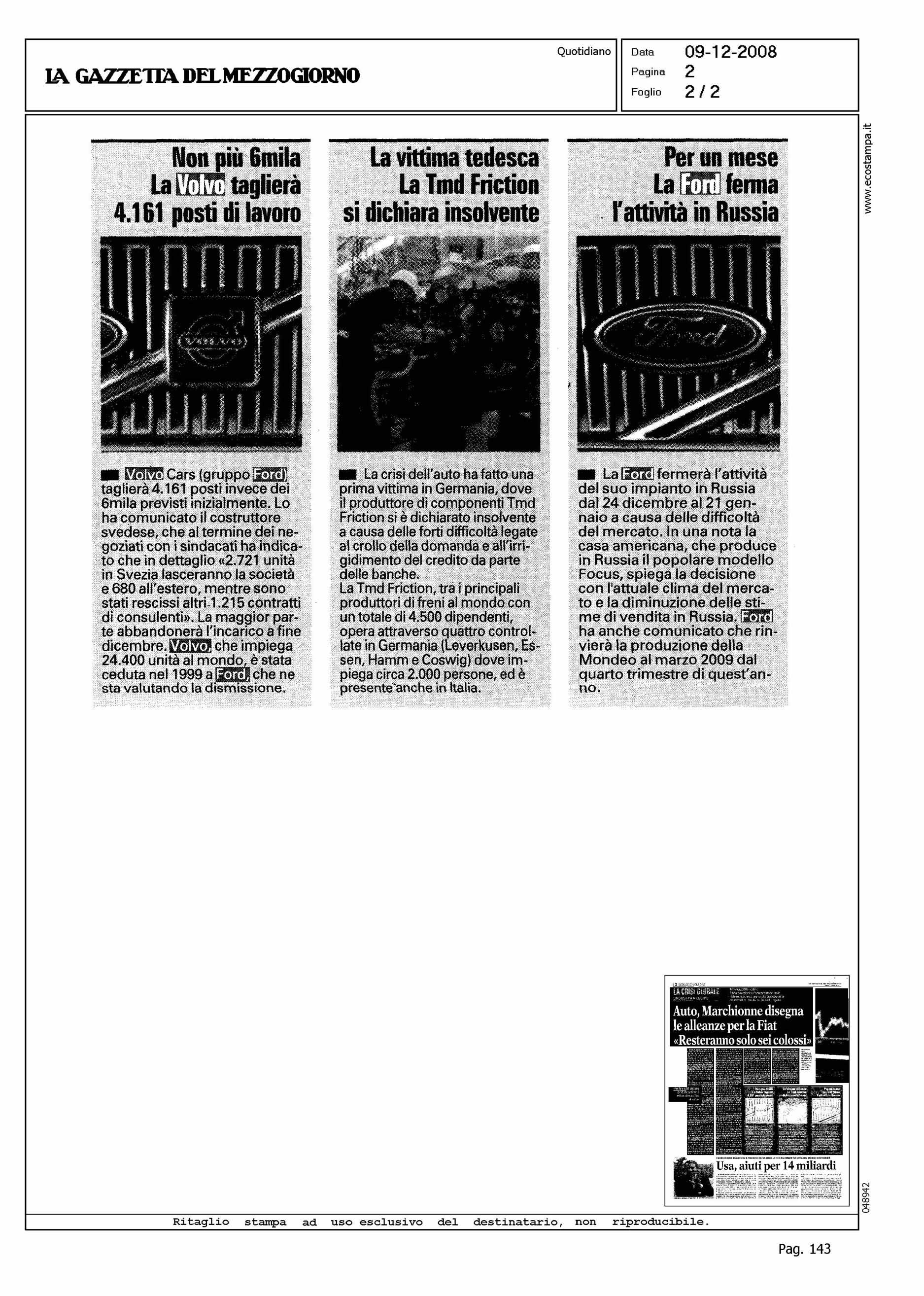 Author: Line: Corporate Model: Corporate Subject: NEWS Title: NON PIU' 6MILA - LA VOLVO TAGLIERA' 4.161 POSTI DI LAVOROHighlight: