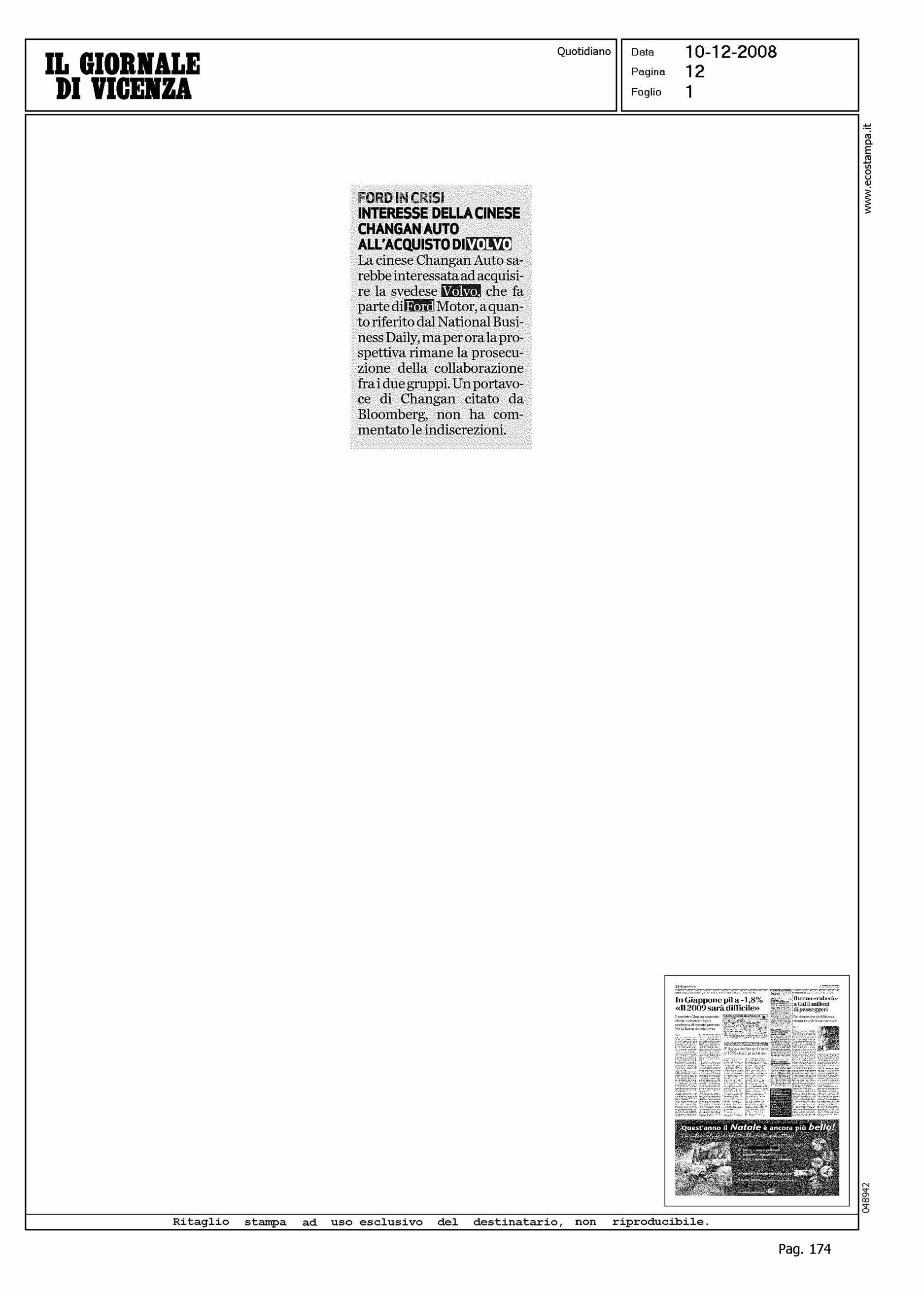 Title: FORD IN CRISI - INTERESSE DELLA CINESE CHANGAN AUTO ALL'ACQUISTO DI VOLVO