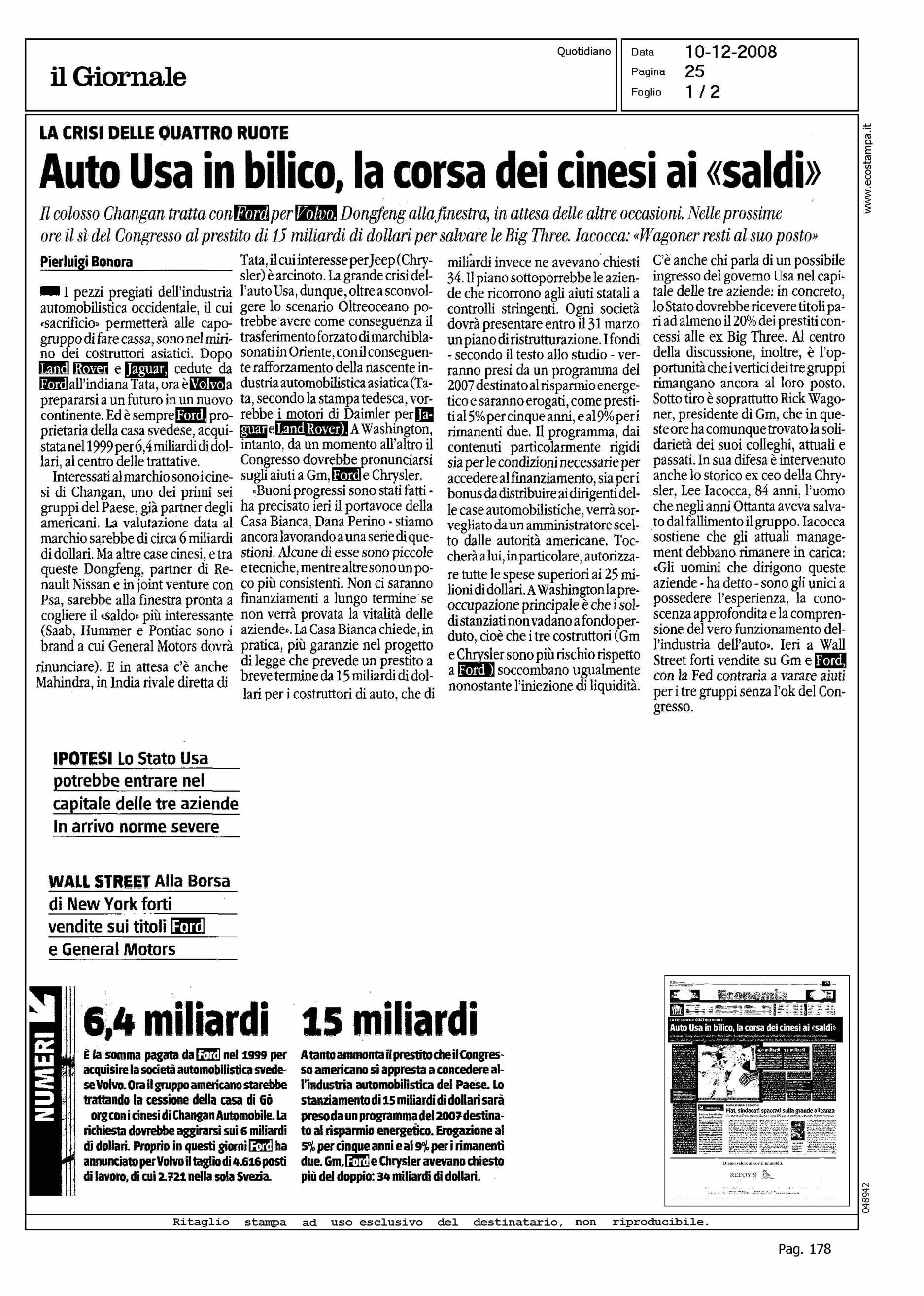 Author: BONORA, PIERLUIGILine: Corporate Model: Corporate Subject: NEWS Title: AUTO USA IN BILICO, LA CORSA DEI CINESI AI "SALDI"Highlight: