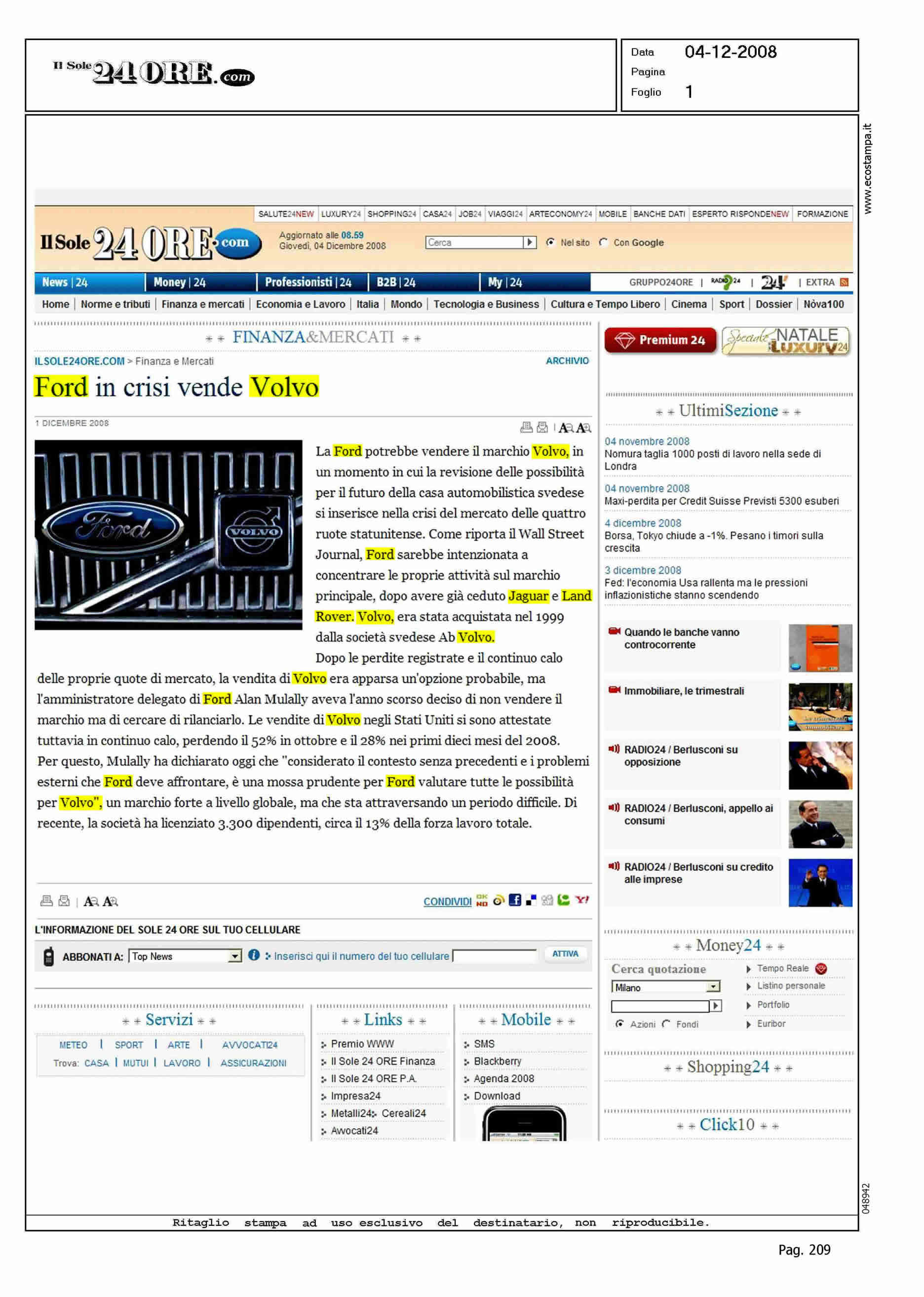 Author: Line: Corporate Model: Corporate Subject: NEWS Title: FORD IN CRISI VENDE VOLVOHighlight: