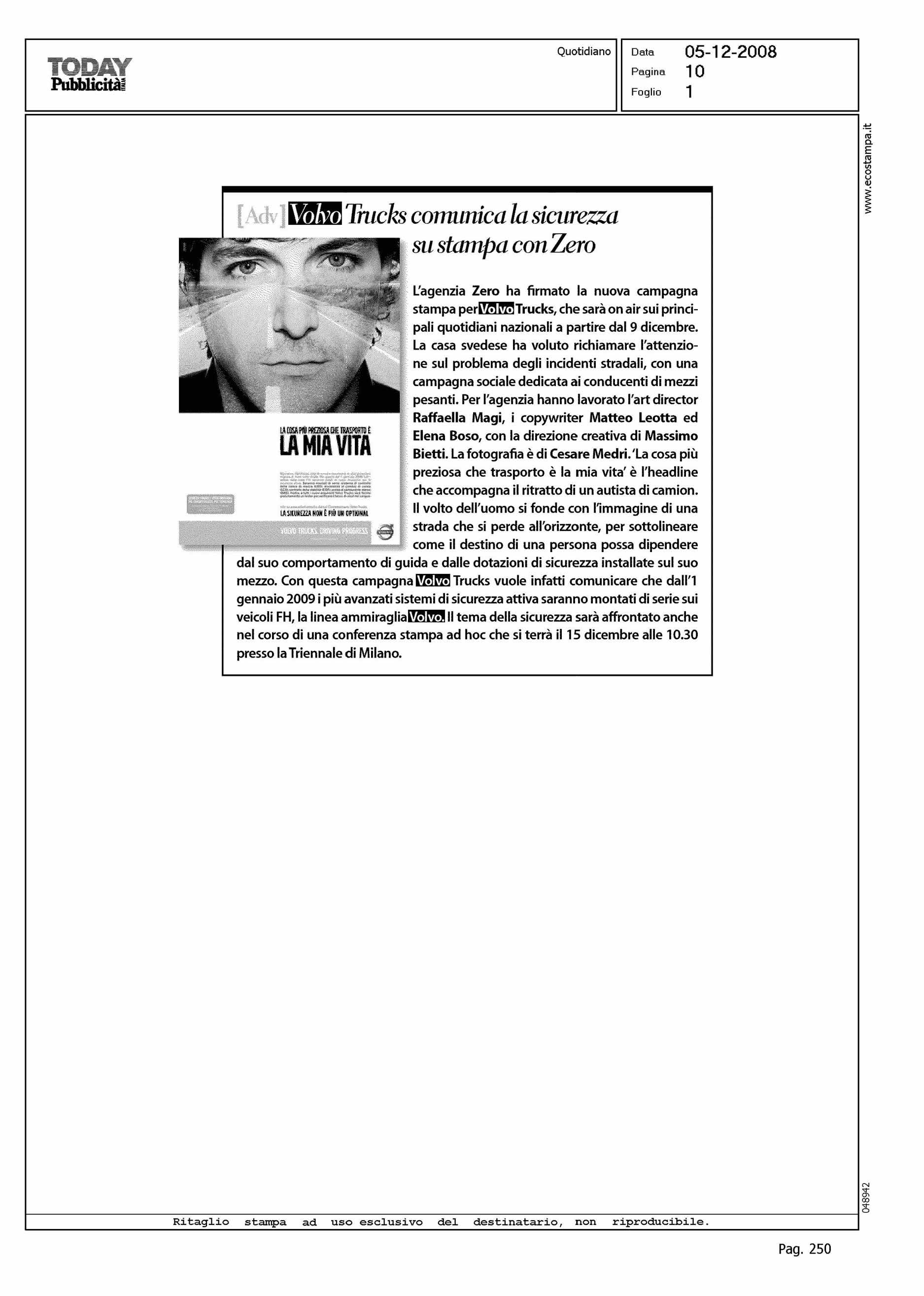 Author: Line: Corporate Model: Corporate Subject: NEWS Title: VOLVO TRUCKS COMUNICA LA SICUREZZA SU STAMPA CON ZEROHighlight: