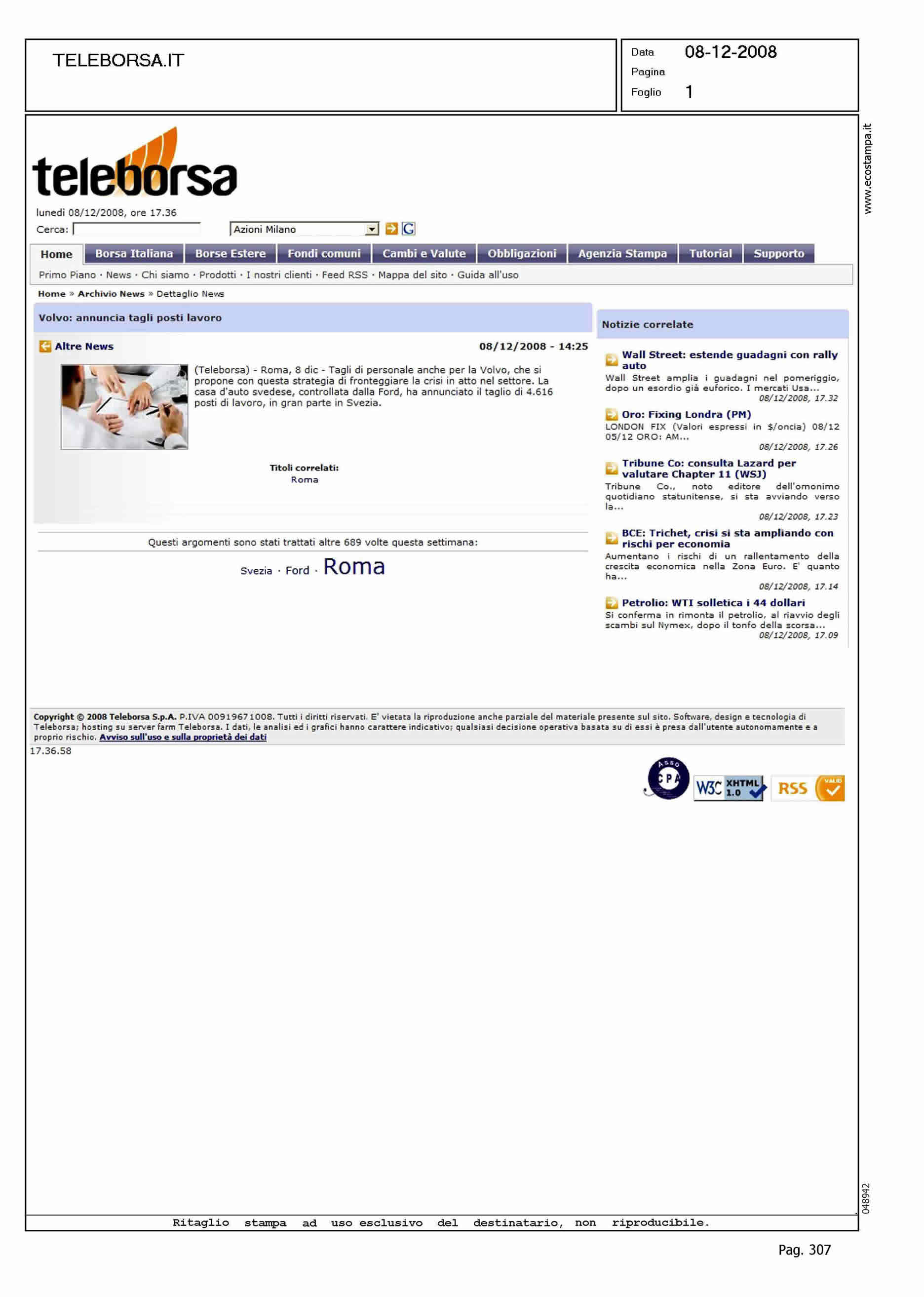 Author: Line: Corporate Model: Corporate Subject: NEWS Title: TAGLI AL PERSONALE ANCHE PER LA VOLVO...Highlight: