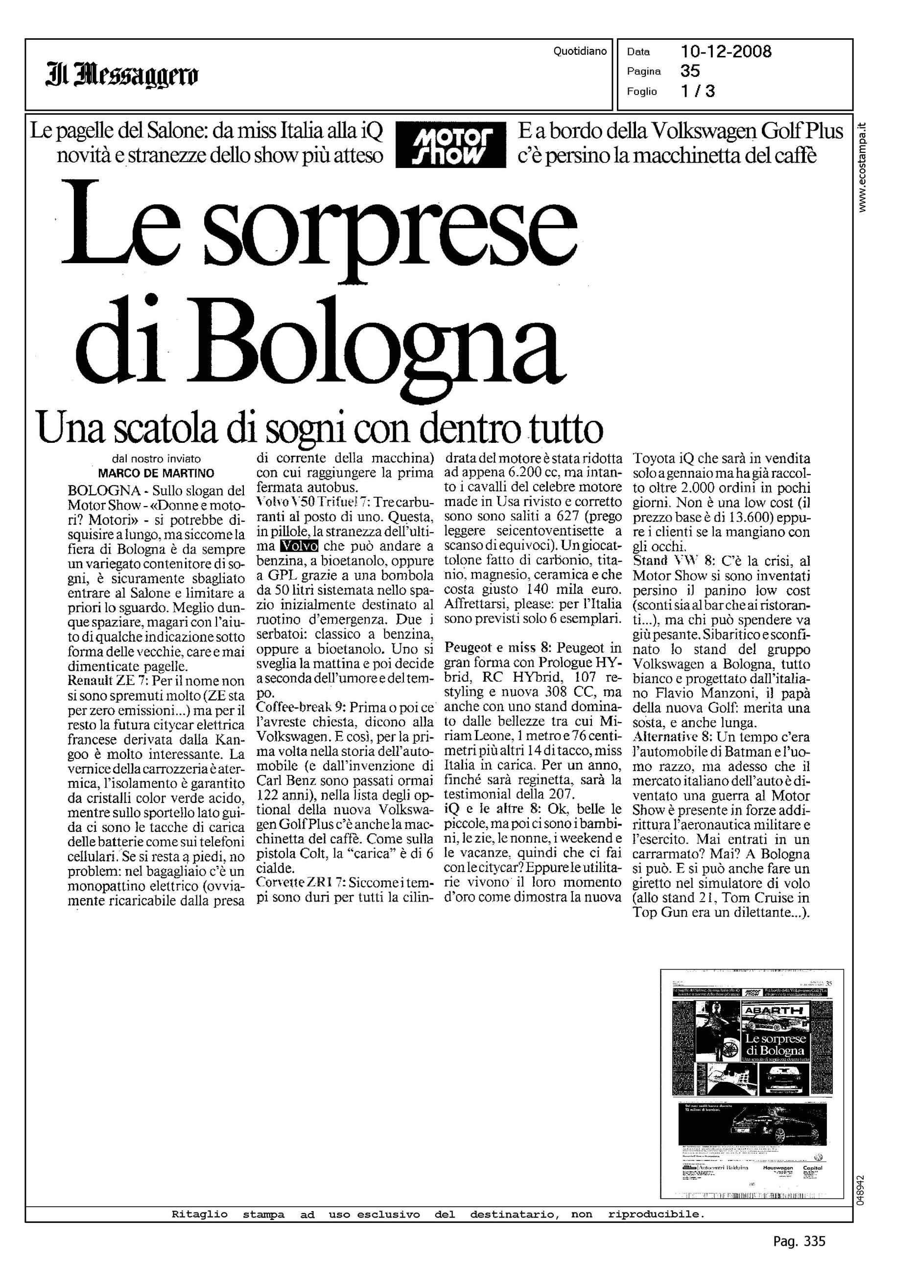 Author: DE MARTINO, MARCOLine: Corporate Model: S40-V50 Subject: MOTORSHOW Title: LE SORPRESE DI BOLOGNAHighlight: