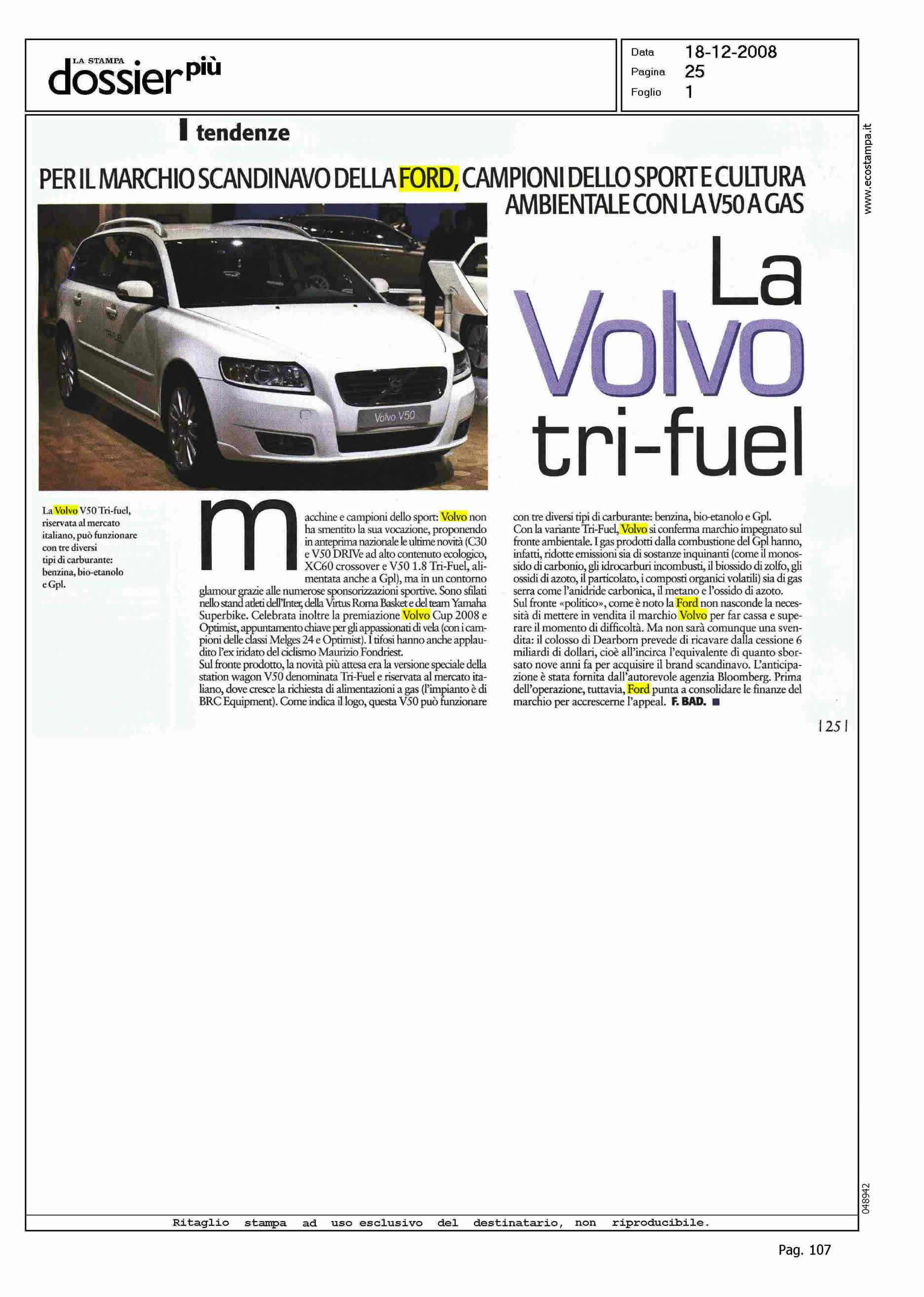 Author: Line: Corporate Model: S40-V50 Subject: DRIVe Title: LA VOLVO TRI-FUELHighlight: