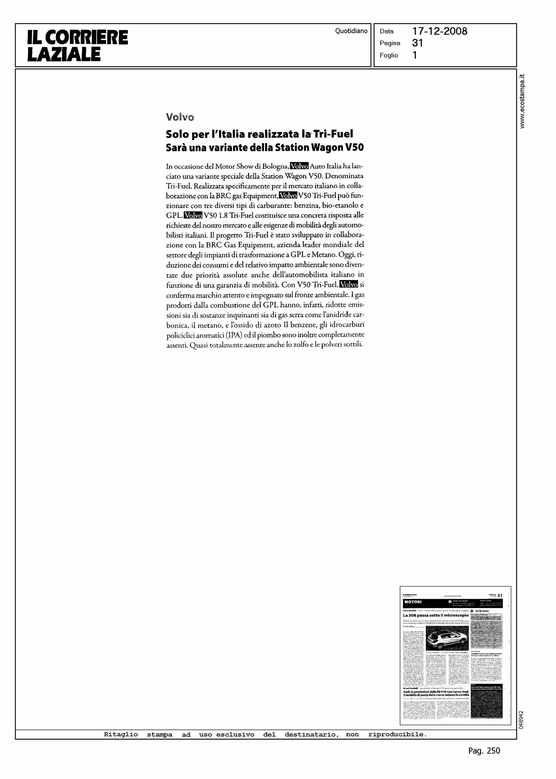 Author: Line: Corporate Model: S40-V50 Subject: DRIVe Title: VOLVO - SOLO PER L'ITALIA REALIZZATA LA TRI-FUEL - SARA' UNA VARIANTE DELLA STATION WAGON V50Highlight: