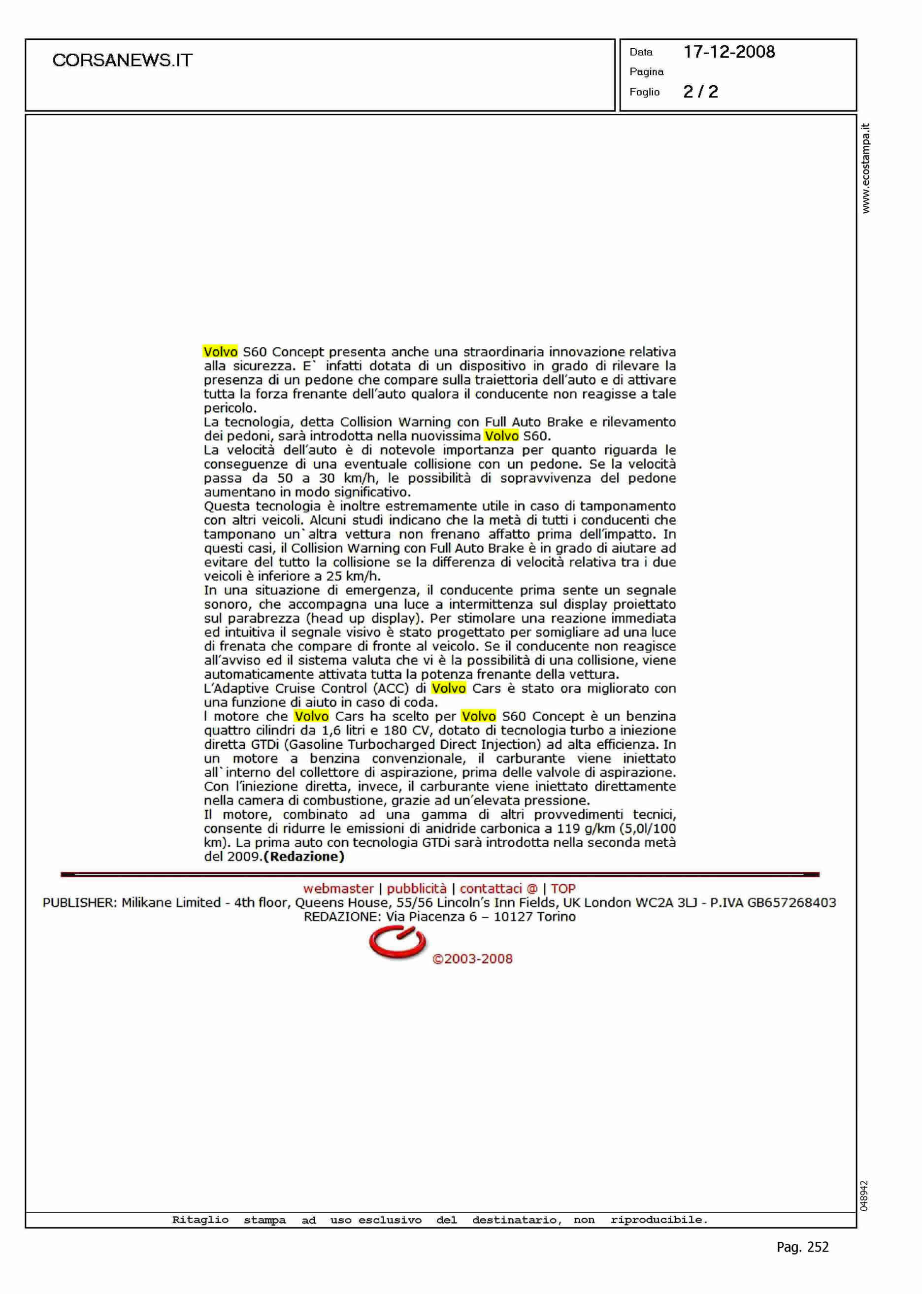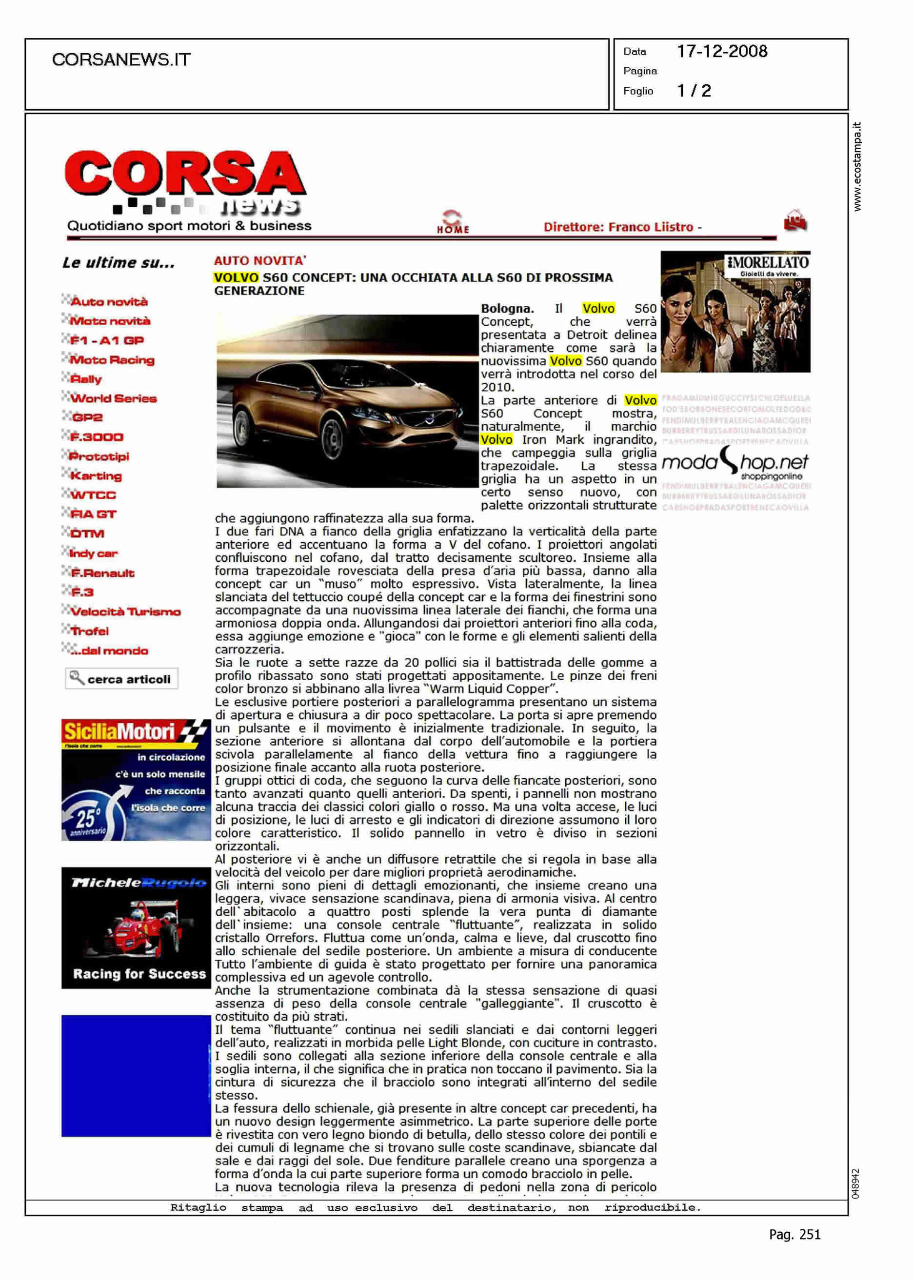 Author: Line: Corporate Model: Corporate Subject: NEWS Title: VOLVO S60 CONCEPT: UNA OCCHIATA ALLA S60 DI PROSSIMA GENERAZIONEHighlight: