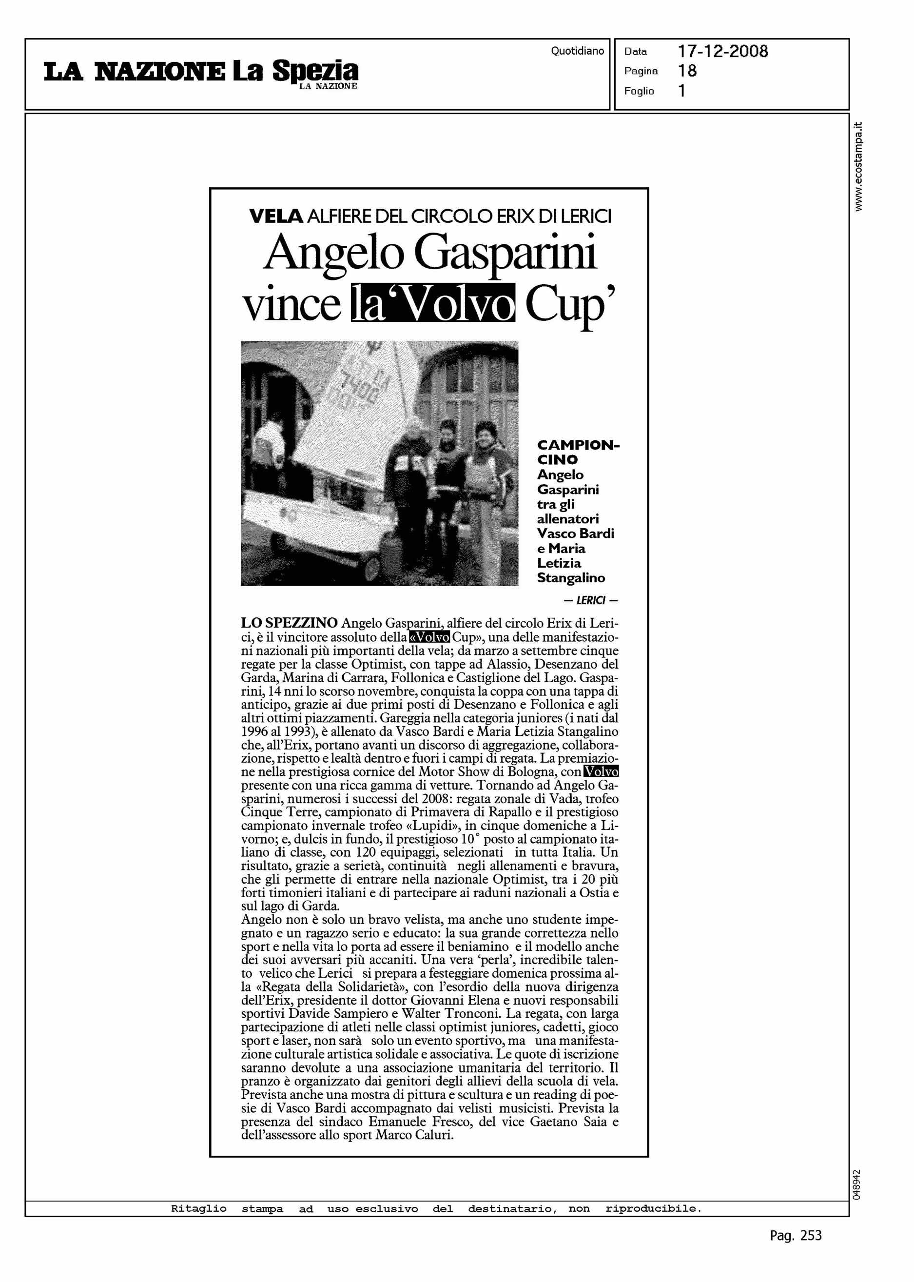 Author: Line: Corporate Model: Corporate Subject: NEWS Title: ANGELO GASPARINI VINCE LA "VOLVO CUP"Highlight: