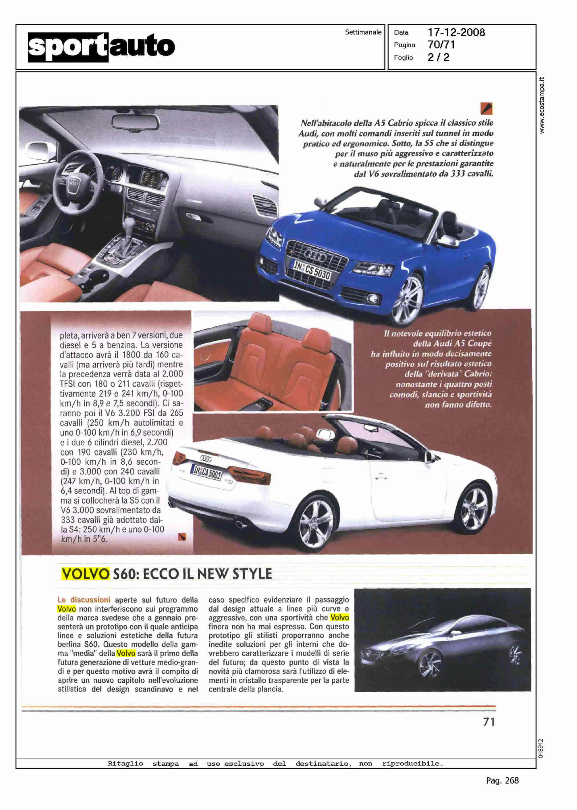 Author: Line: Corporate Model: Corporate Subject: NEWS Title: VOLVO S60: ECCO IL NEW STYLEHighlight: