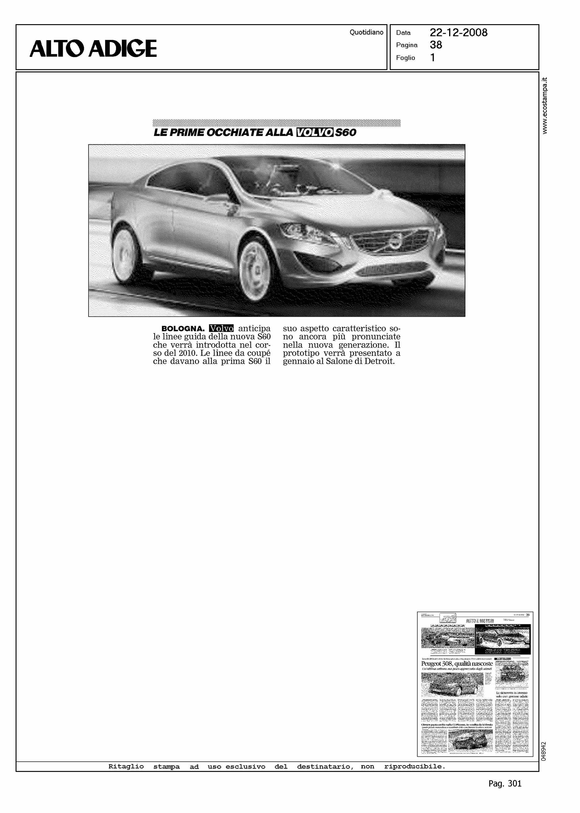 Author: Line: Corporate Model: Corporate Subject: NEWS Title: LE PRIME OCCHIATE ALLA VOLVO S60Highlight: