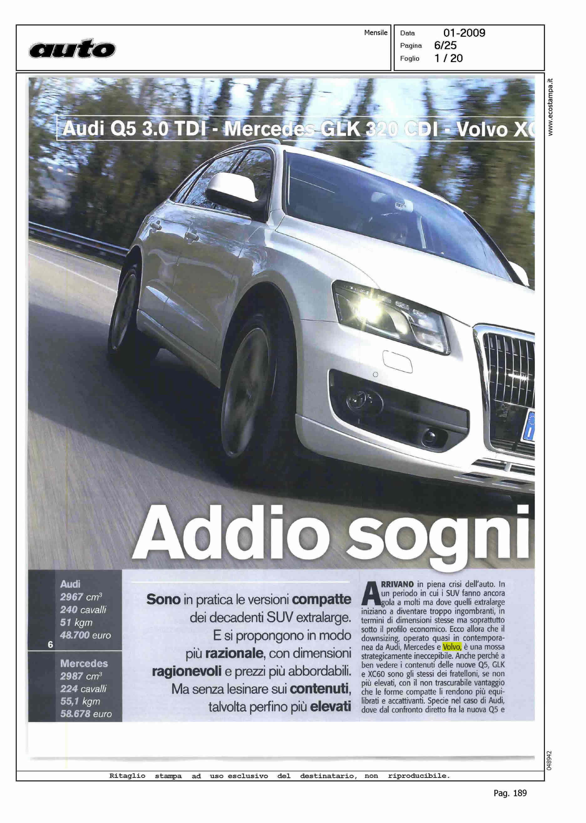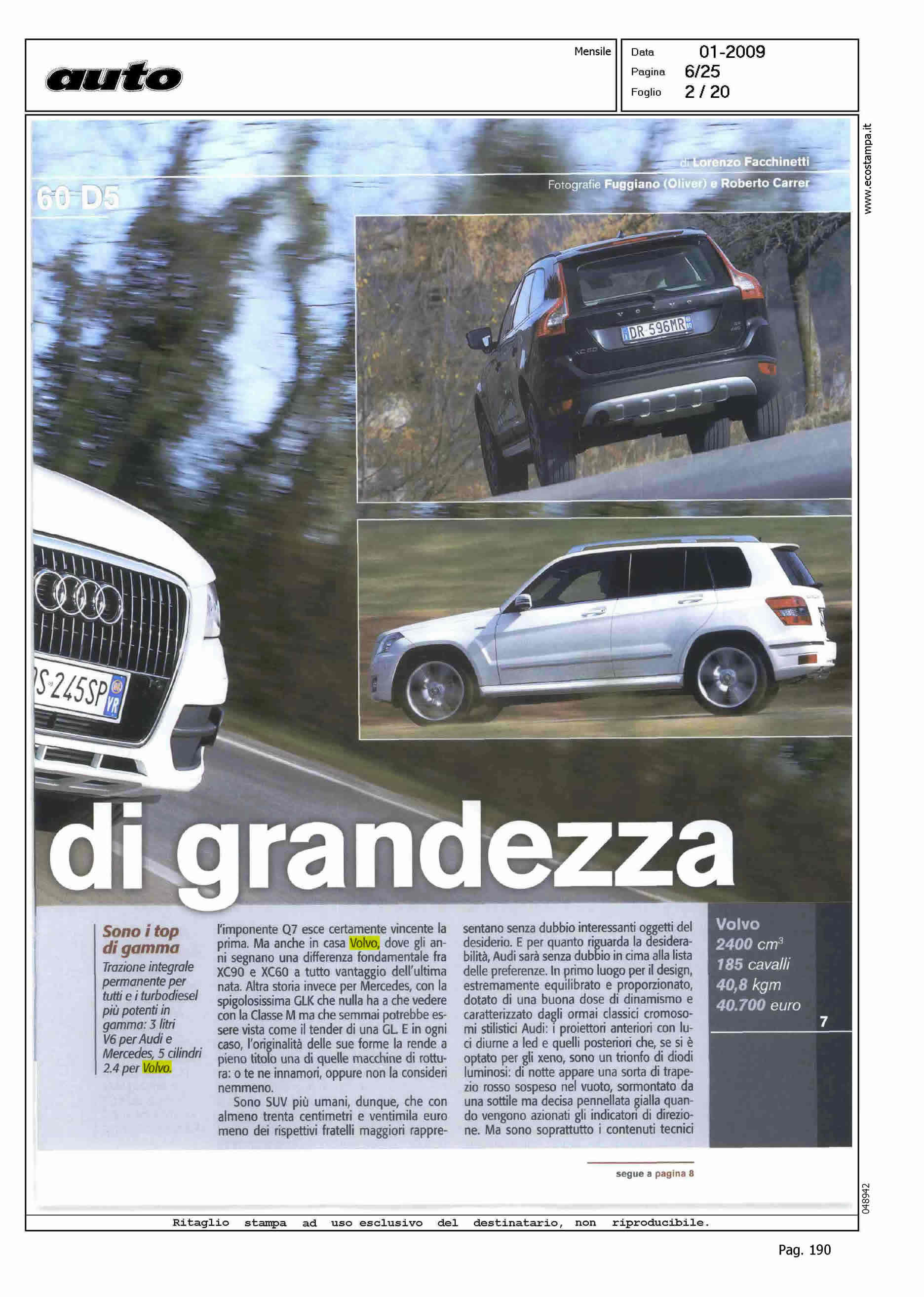 Author: FACCHINETTI, LORENZOLine: XC60 Model: Subject: TEST-DRIVE Title: ADDIO SOGNI DI GRANDEZZAHighlight: