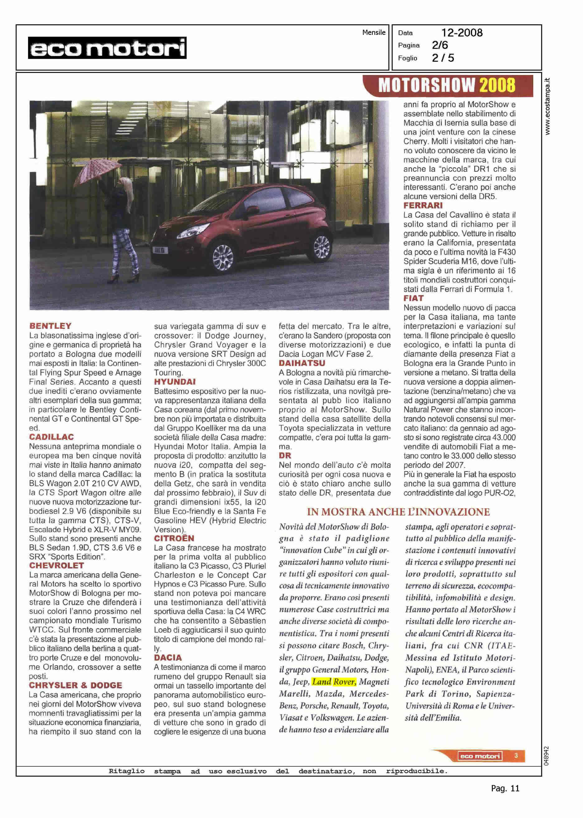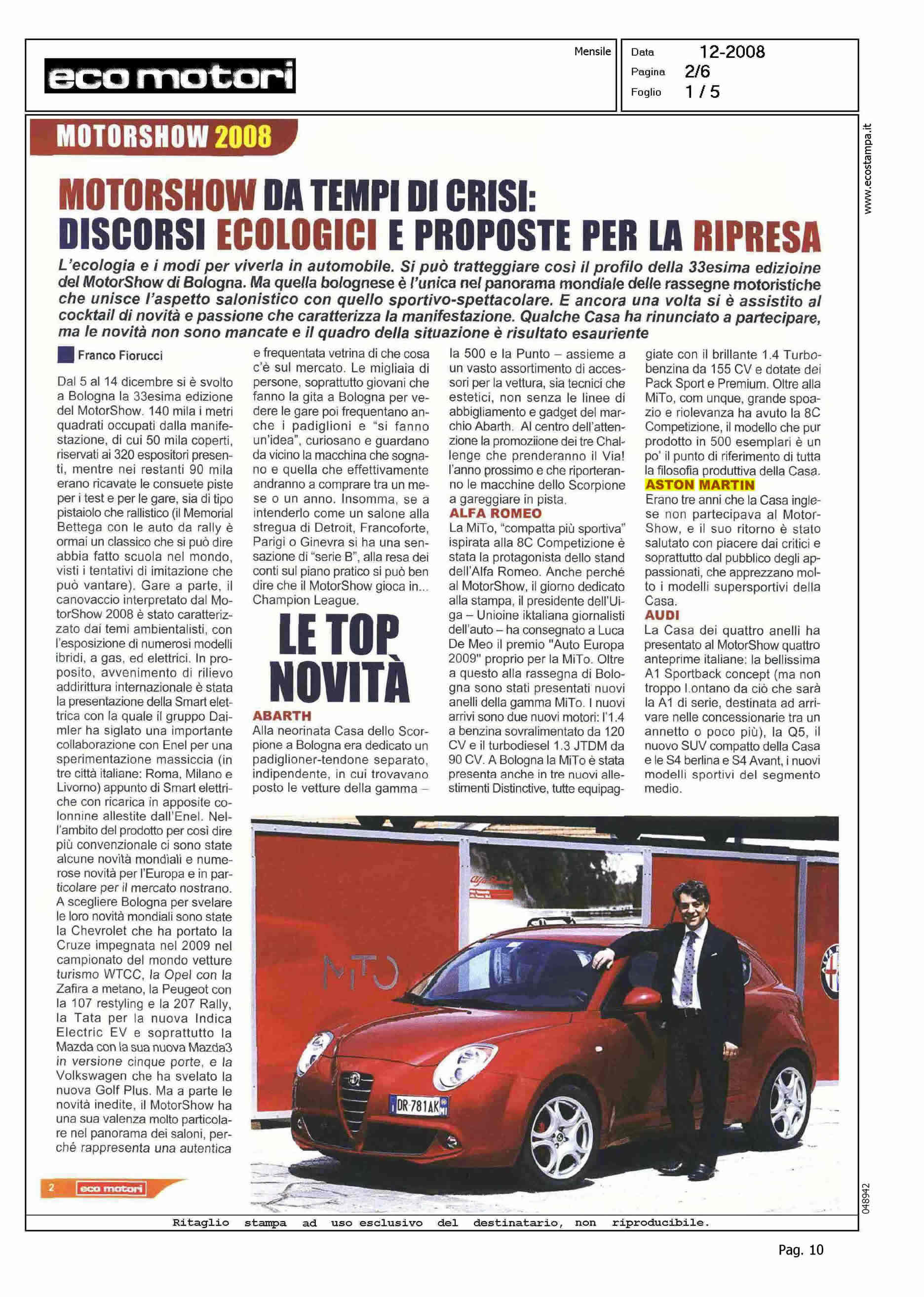 Author: FIORUCCI, FRANCOLine: Corporate Model: Corporate Subject: - Title: MOTORSHOW DA TEMPI DI CRISI: DISCORSI ECOLOGICI E PROPOSTE PER LA RIPRESAHighlight: