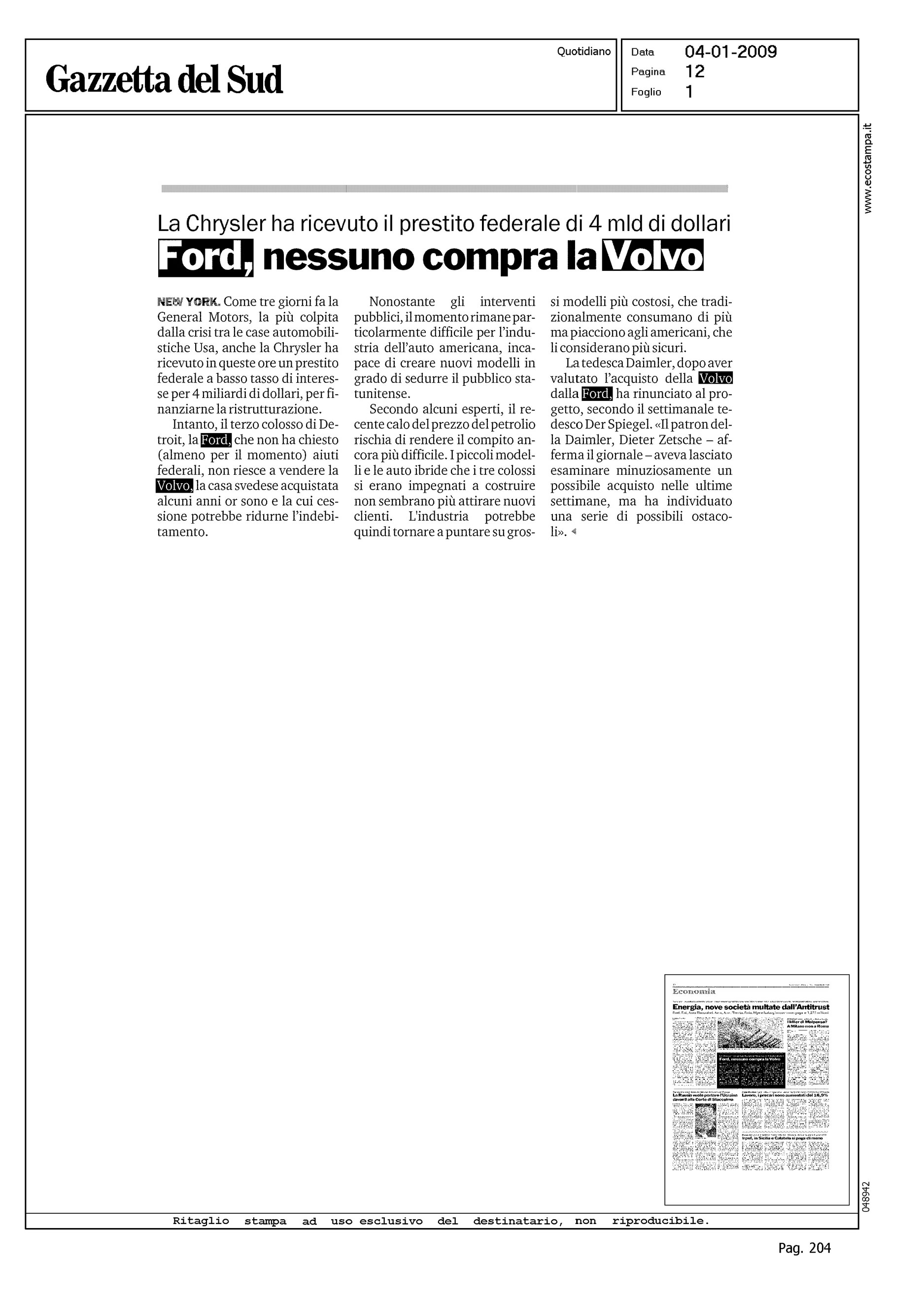 Author: Line: Corporate Model: Corporate Subject: - Title: FORD, NESSUNO COMPRA LA VOLVOHighlight: