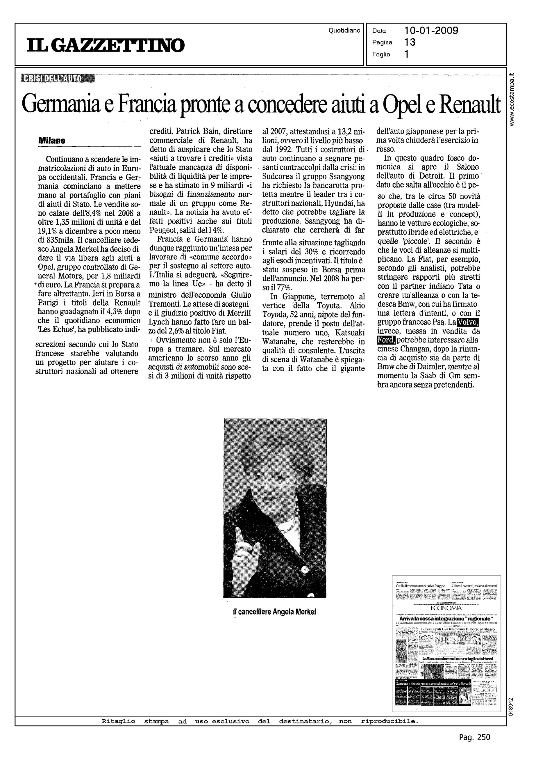 Author: Line: Corporate Model: Corporate Subject: - Title: GERMANIA E FRANCIA PRONTE A CONCEDERE AIUTI A OPEL E RENAULTHighlight: