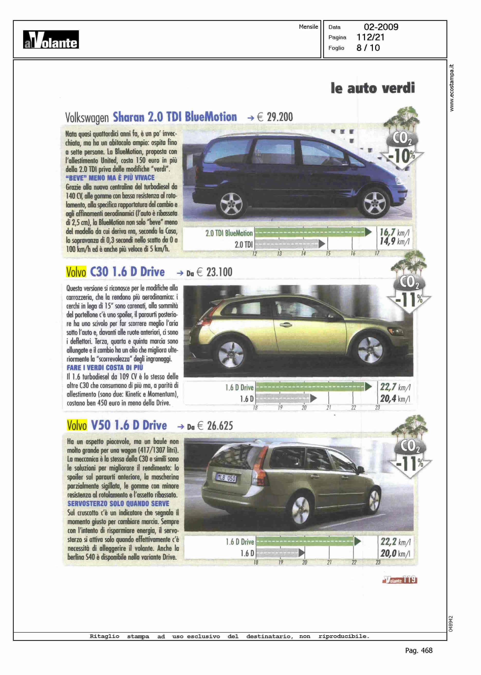 Author: Line: Corporate Model: Volvo S40 - V50 Subject: Line (Range) Drive Title: DAI UNA MANO ALL'AMBIENTE E AL PORTAFOGLI - VOLVO C30, VOLVO V50 DRIVeHighlight: