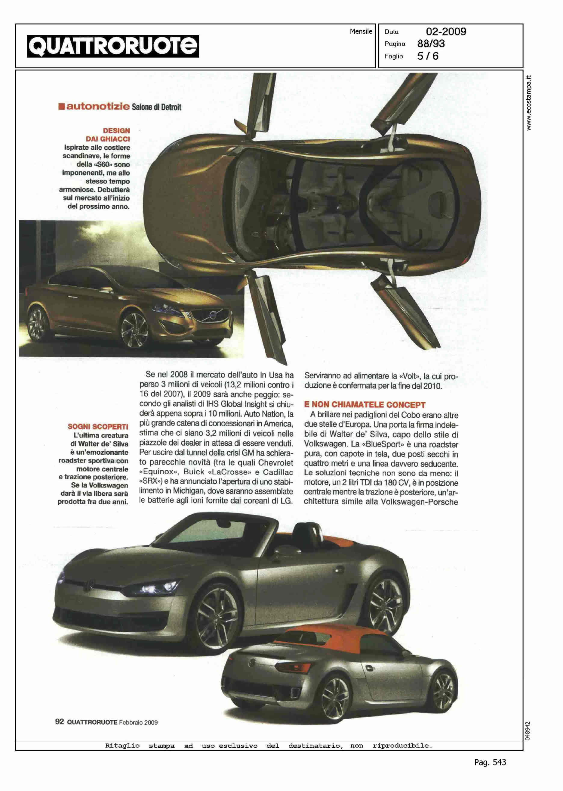 Author: SPARISCI, DANIELELine: S60 Model: Linea S60 Concept Subject: - Title: SI RIPARTE SULLA A7Highlight: