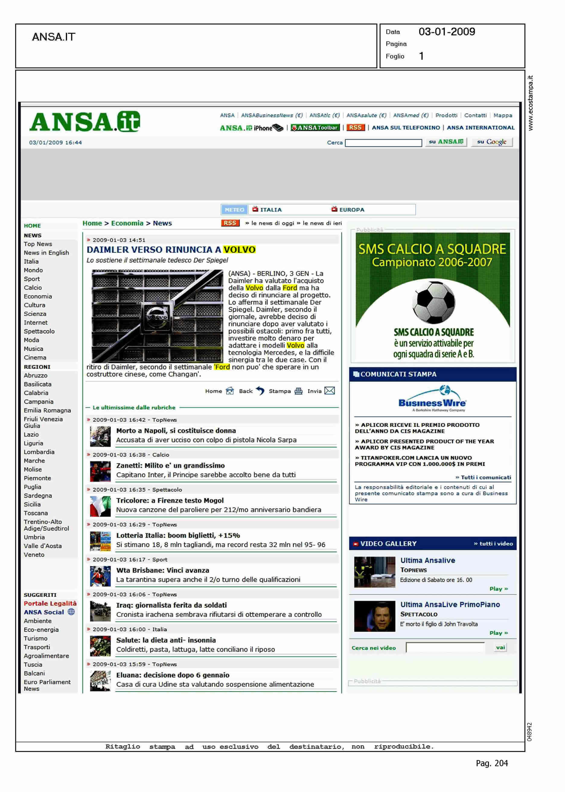 Author: Line: Corporate Model: Corporate Subject: - Title: DAIMLER VERSO RINUNCIA A VOLVOHighlight: