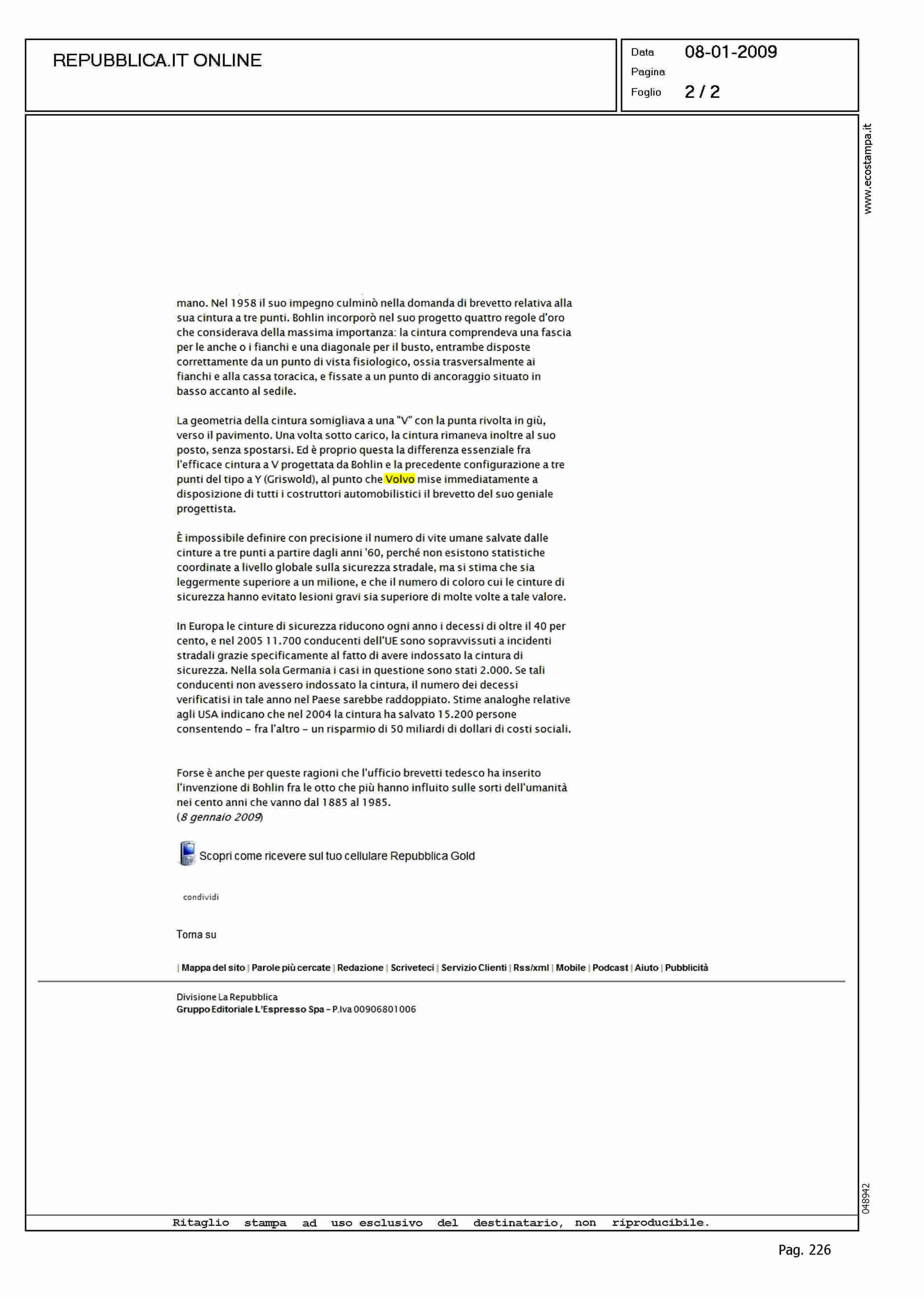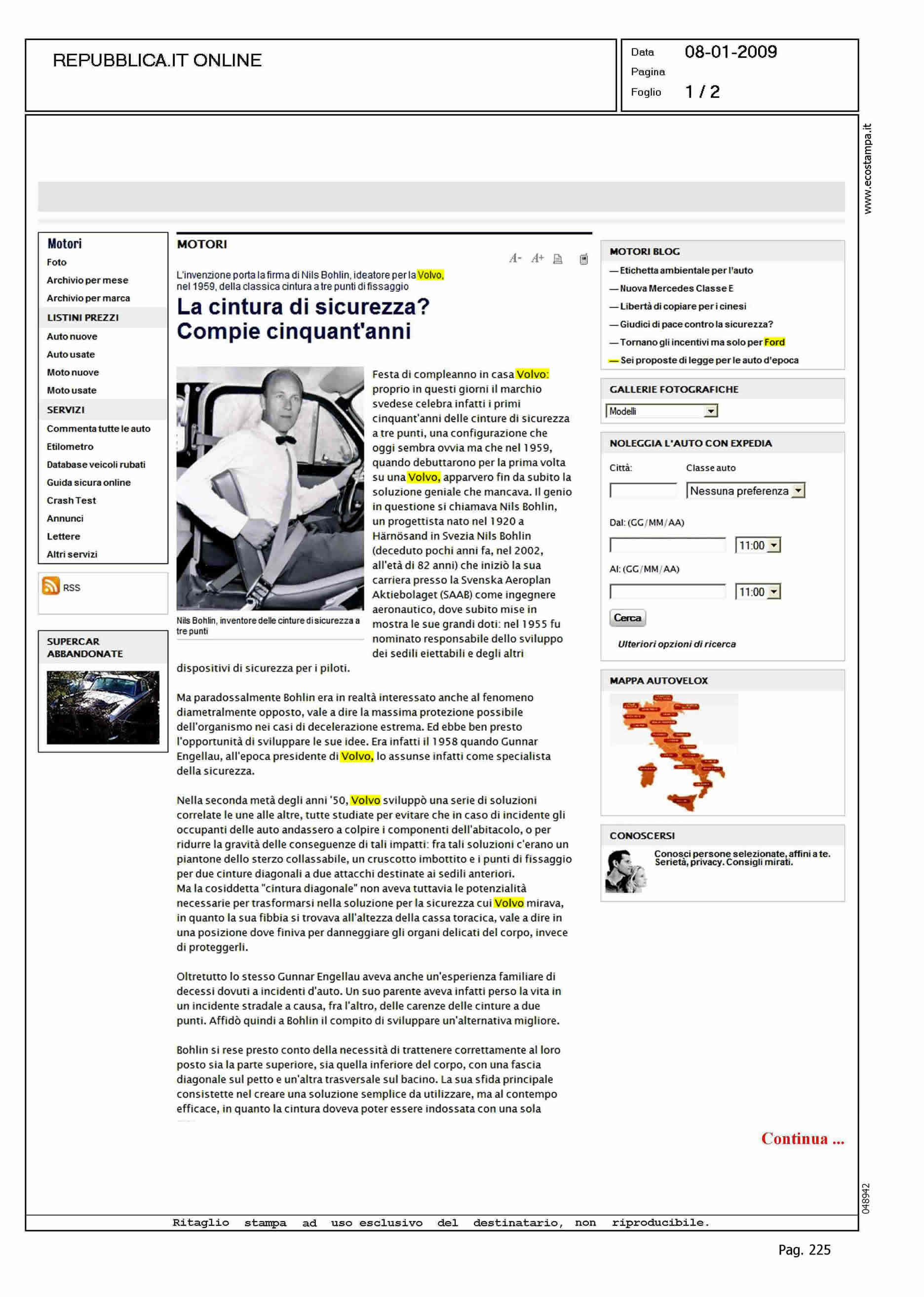 Author: Line: Corporate Model: Corporate Subject: - Title: LA CINTURA DI SICUREZZA? COMPIE CINQUANT'ANNIHighlight: