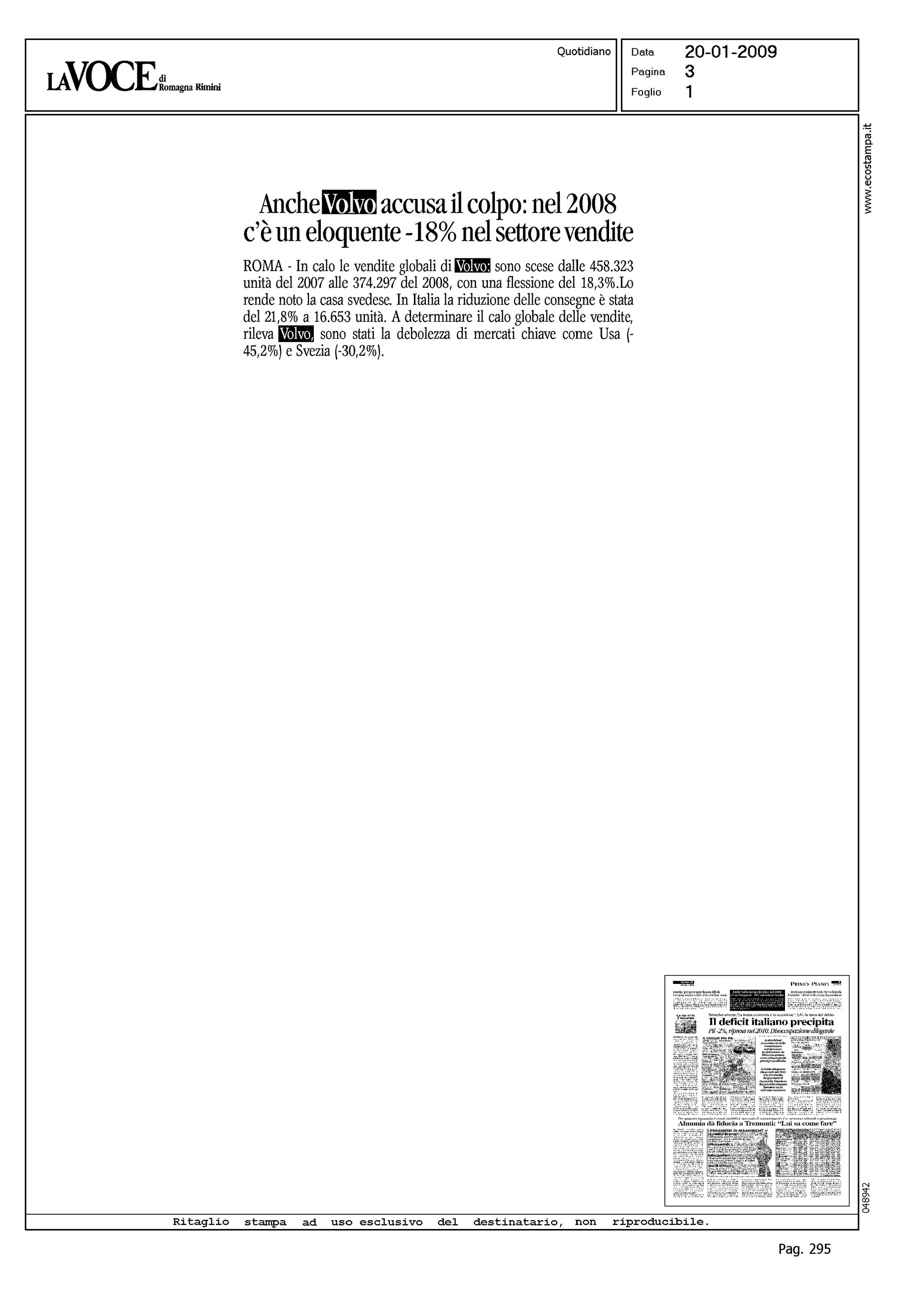 Author: Line: Corporate Model: Corporate Subject: - Title: ANCHE VOLVO ACCUSA IL COLPO: NEL 2008 C'E' UN ELOQUENTE -18% NEL SETTORE VENDITEHighlight: