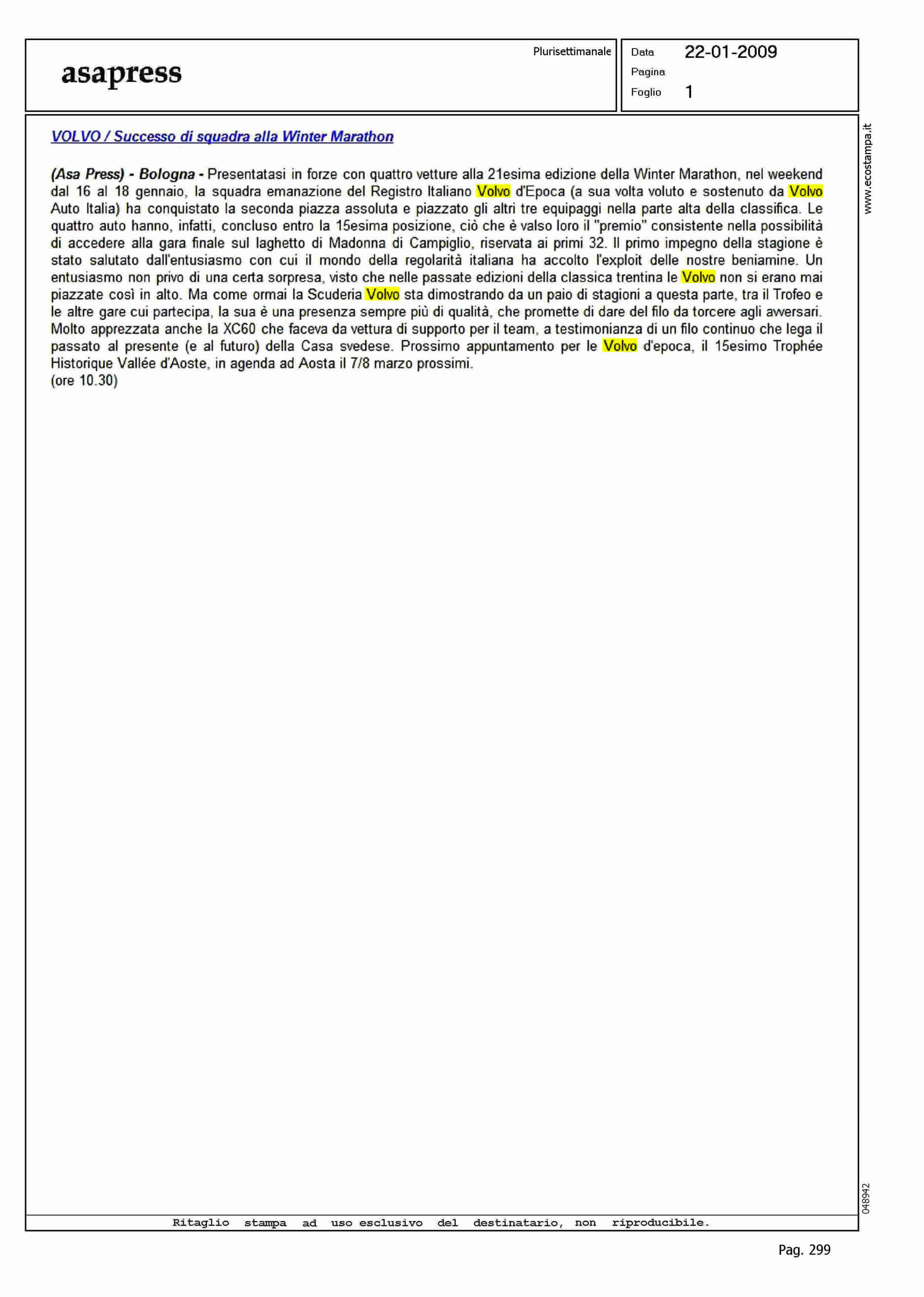 Author: Line: Corporate Model: Corporate Subject: - Title: VOLVO/SUCCESSO DI SQUADRA ALLA WINTER MARATHONHighlight: