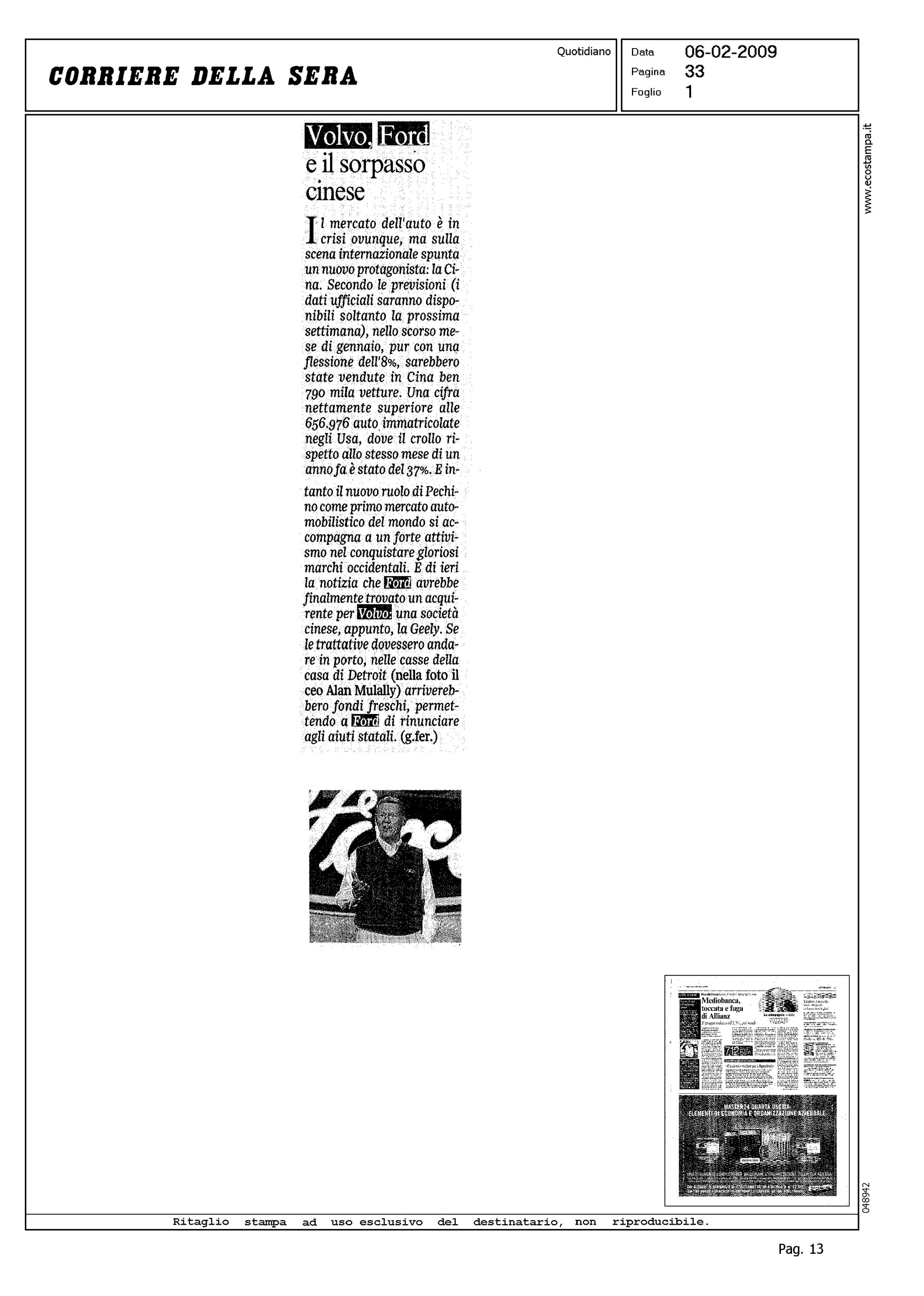 Author: Line: Corporate Model: Corporate Subject: - Title: VOLVO, FORD E IL SORPASSO CINESEHighlight: