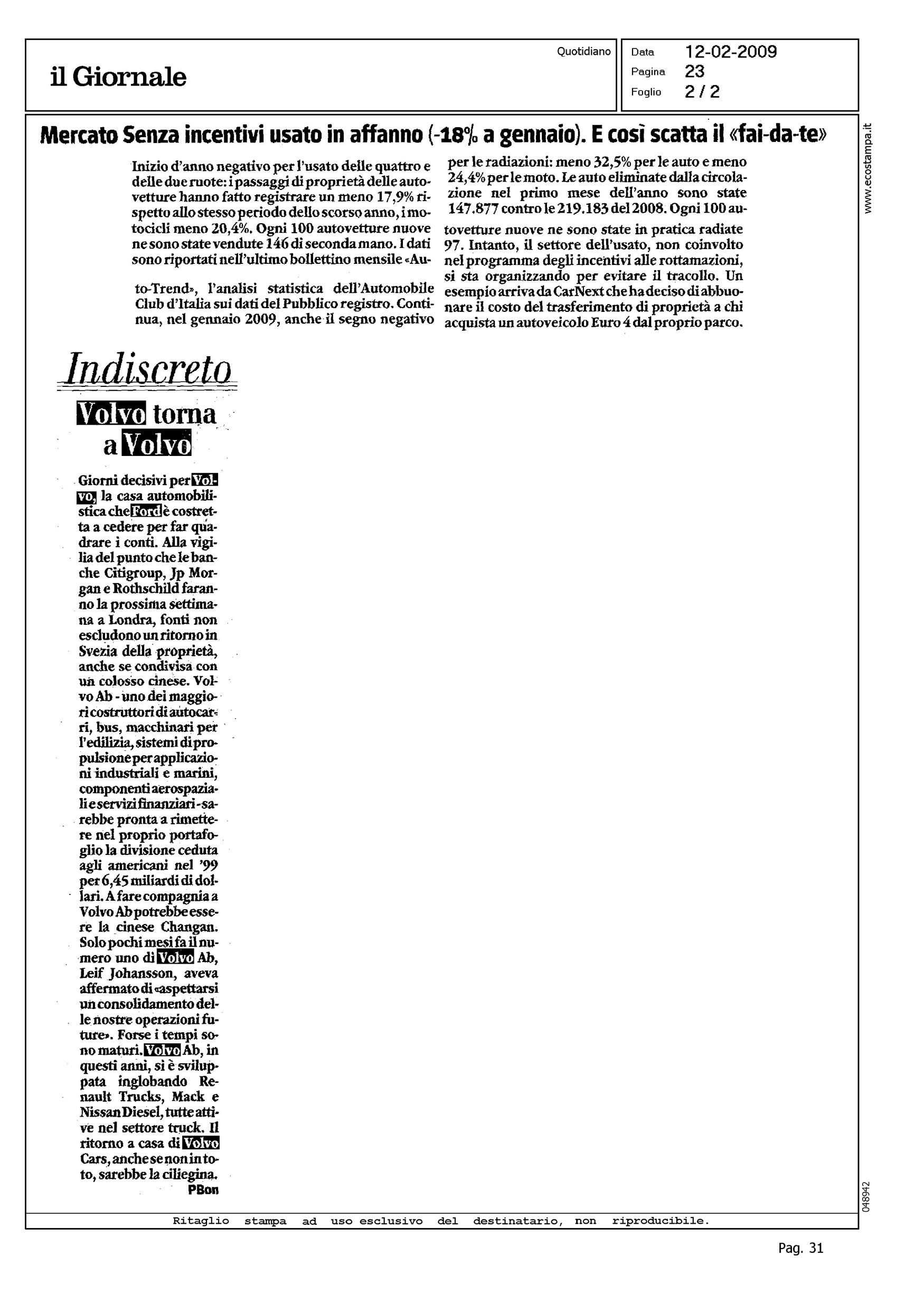 Author: BONORA, PIERLUIGILine: Corporate Model: Corporate Subject: - Title: VOLVO TORNA A VOLVOHighlight:
