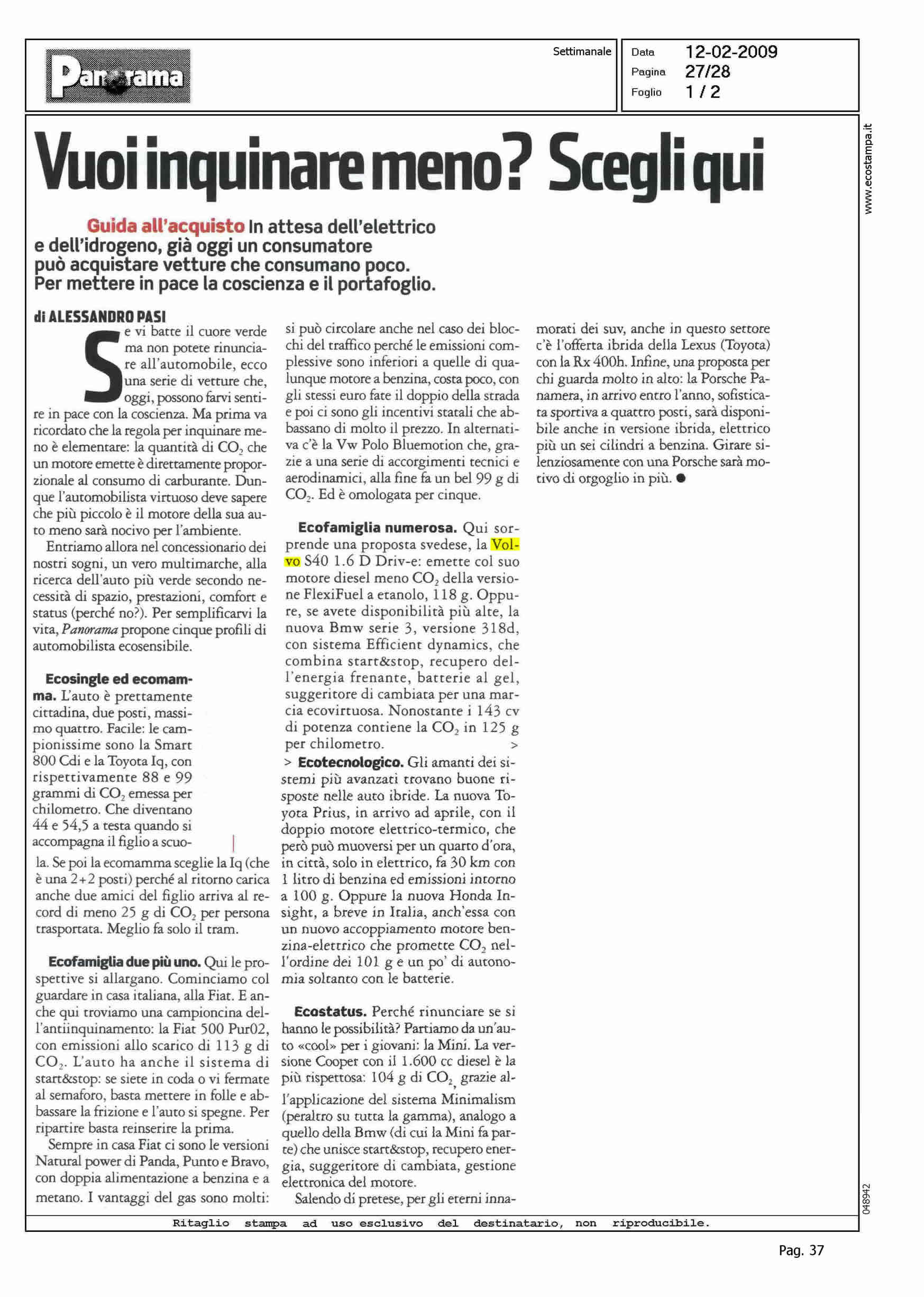 Author: PASI, ALESSANDROLine: Corporate Model: Corporate Subject: Line (Range) Drive Title: VUOI INQUINARE MENO? SCEGLI QUIHighlight: