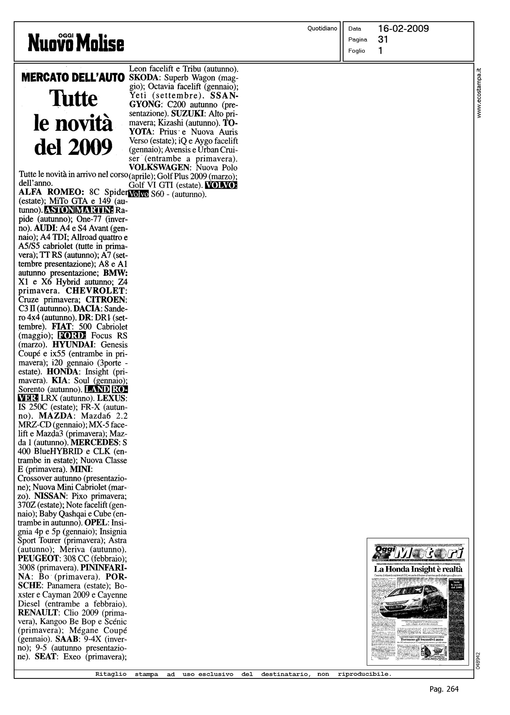 Author: Line: Corporate Model: Corporate Subject: - Title: TUTTE LE NOVITA' DEL 2009Highlight: