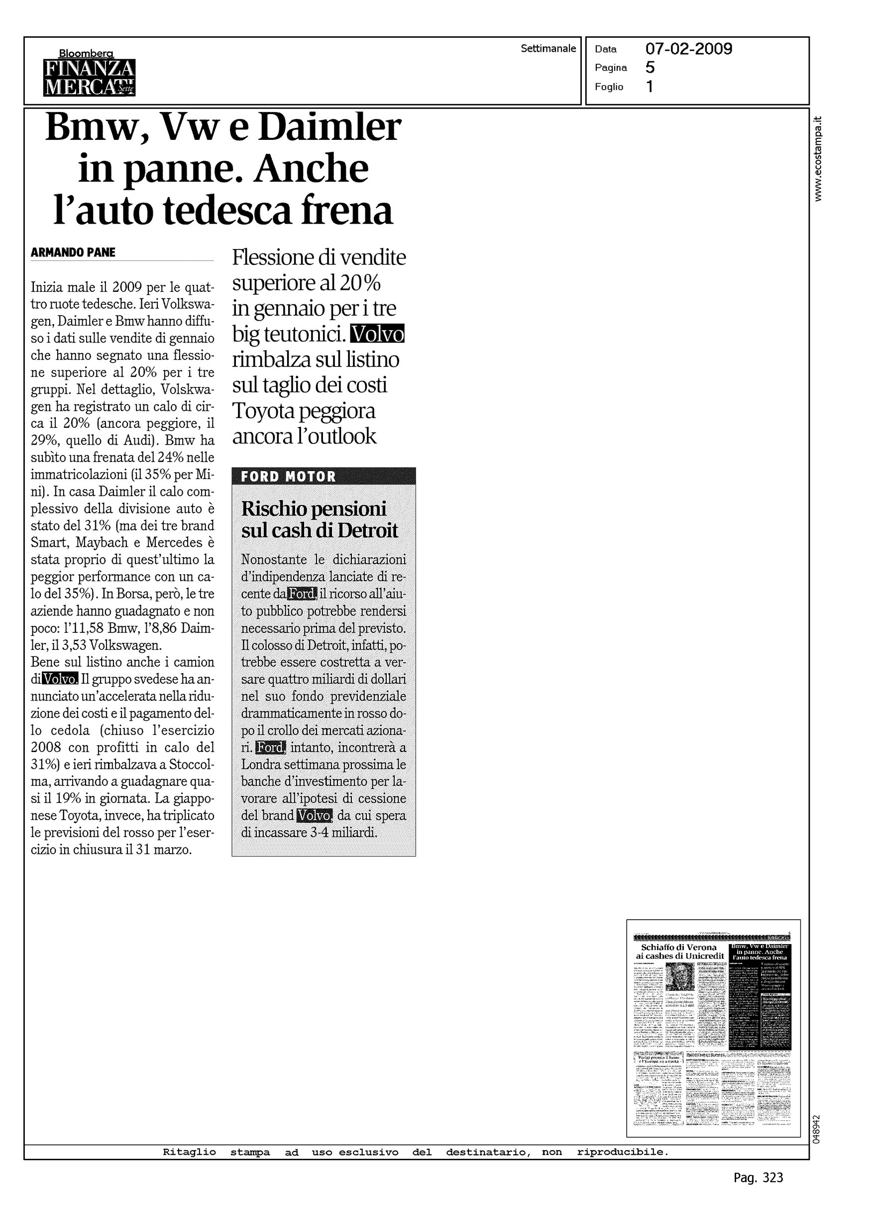 Author: PANE, ARMANDOLine: Corporate Model: Corporate Subject: - Title: BMW, VW E DAIMLER IN PANNE. ANCHE L'AUTO TEDESCA FRENA - Volvo rimbalza sul listino sul taglio dei costiHighlight: