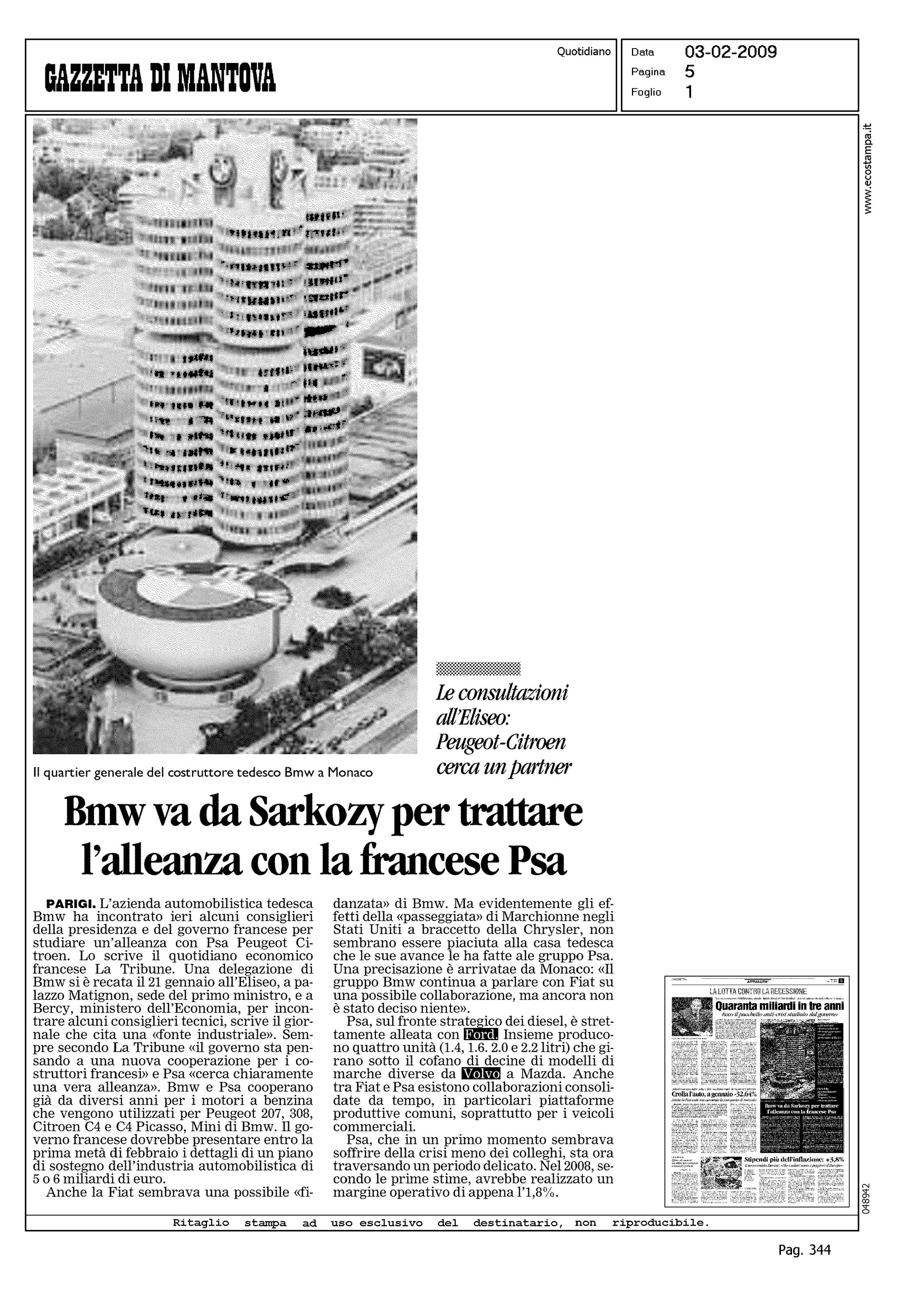 Author: Line: Corporate Model: Corporate Subject: - Title: BMW VA DA SARKOZY PER TRATTARE L'ALLEANZA CON LA FRANCESE PSAHighlight: