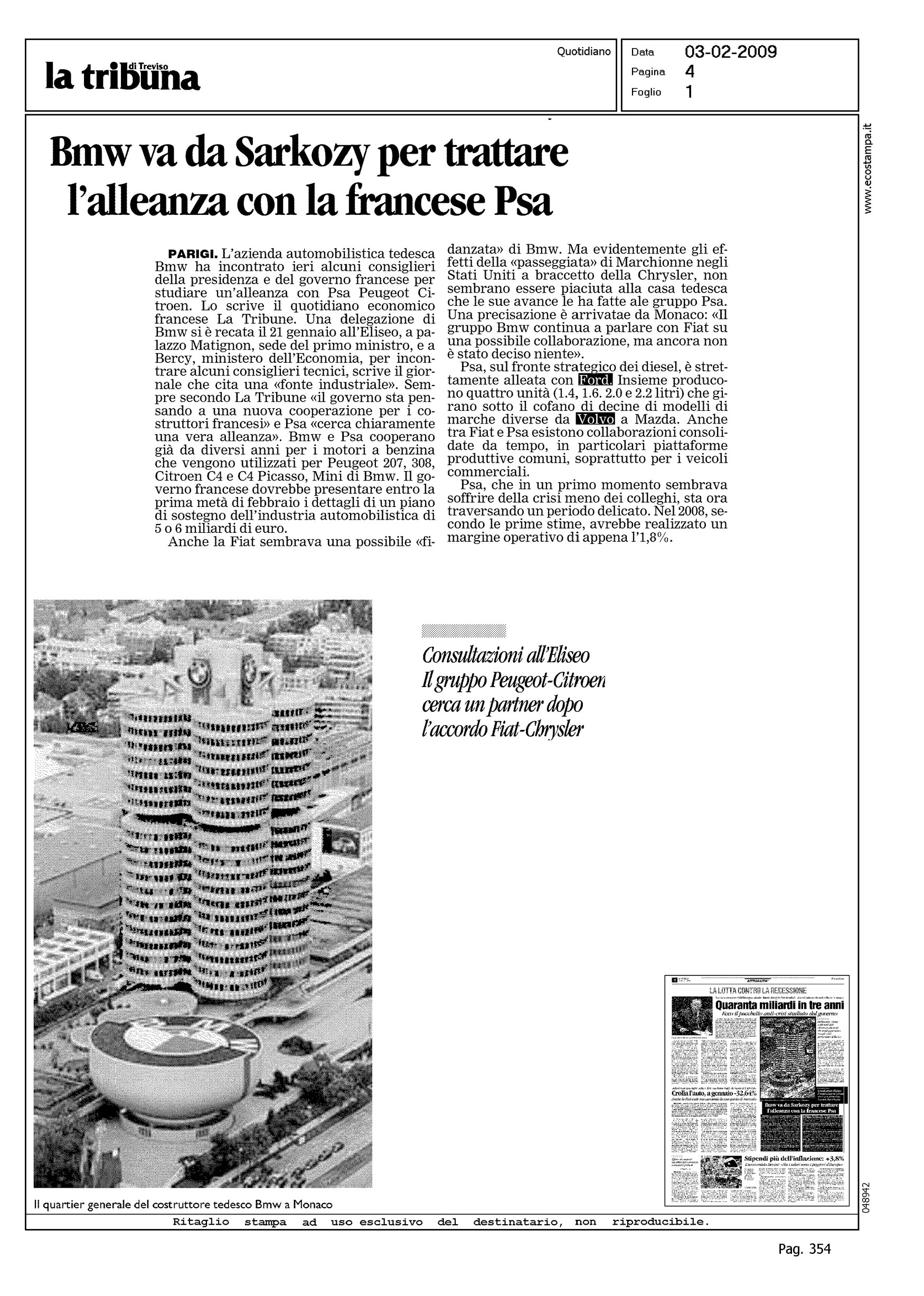 Author: Line: Corporate Model: Corporate Subject: - Title: BMW VA DA SARKOZY PER TRATTARE L'ALLEANZA CON LA FRANCESE PSAHighlight: