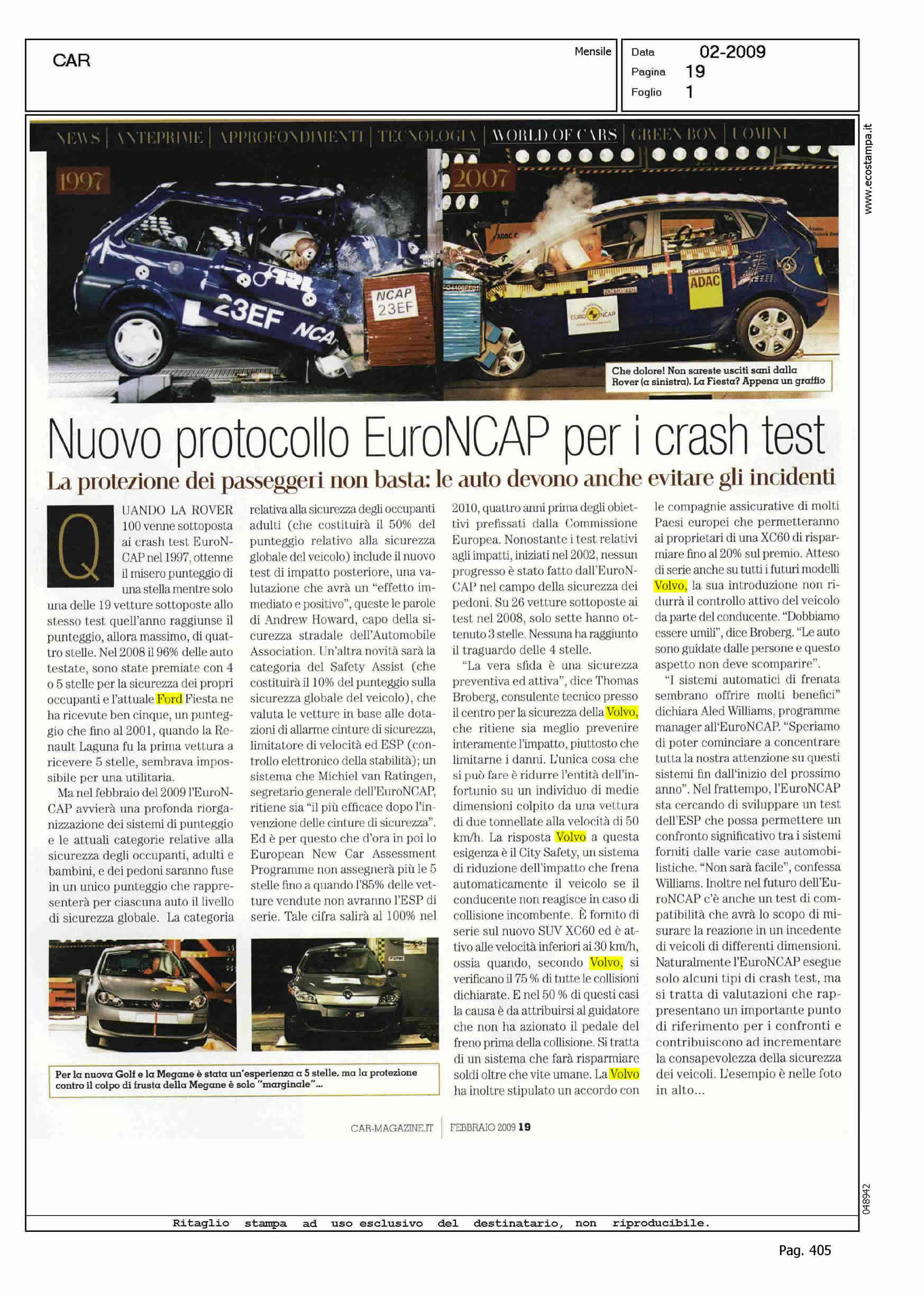 Author: Line: Corporate Model: Corporate Subject: - Title: NUOVO PROTOCOLLO EURONCAP PER I CRASH TESTHighlight: